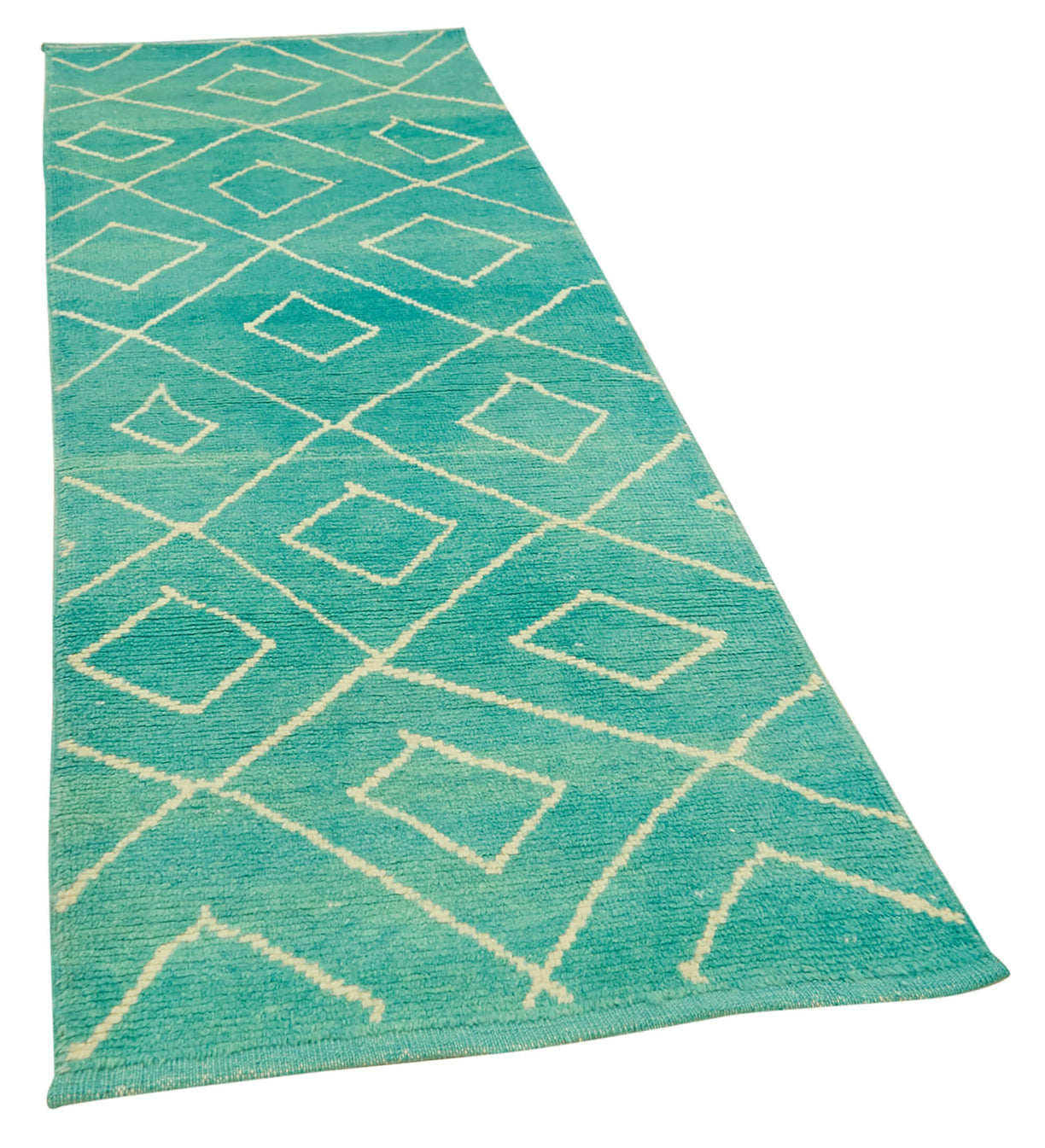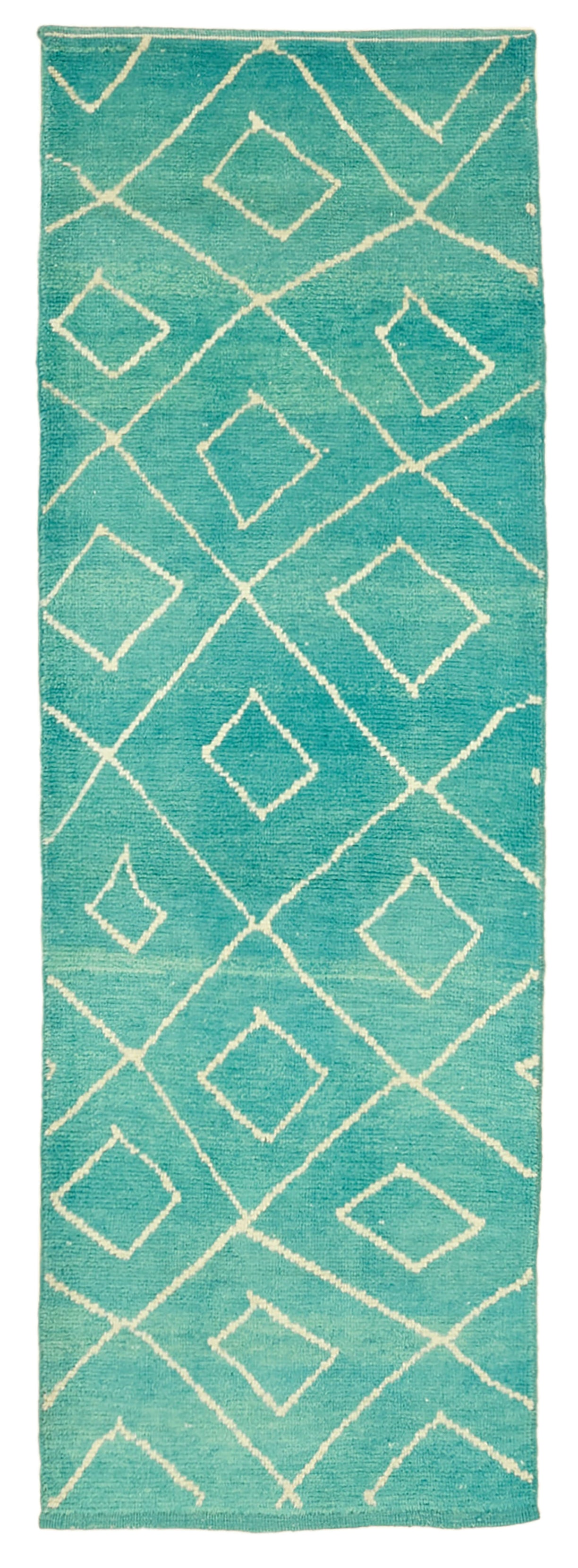 3' 3'' x 9' 9'' Turquoise Color Moroccan Runner Rug