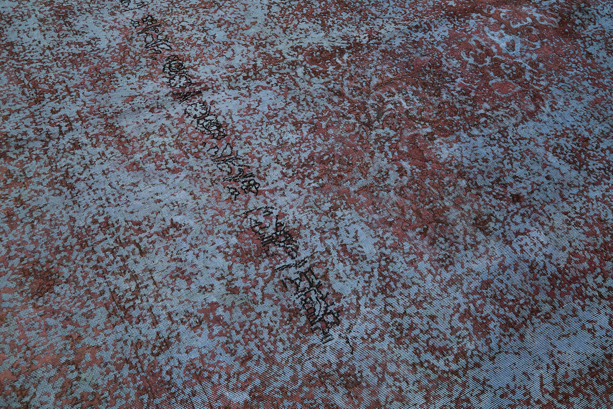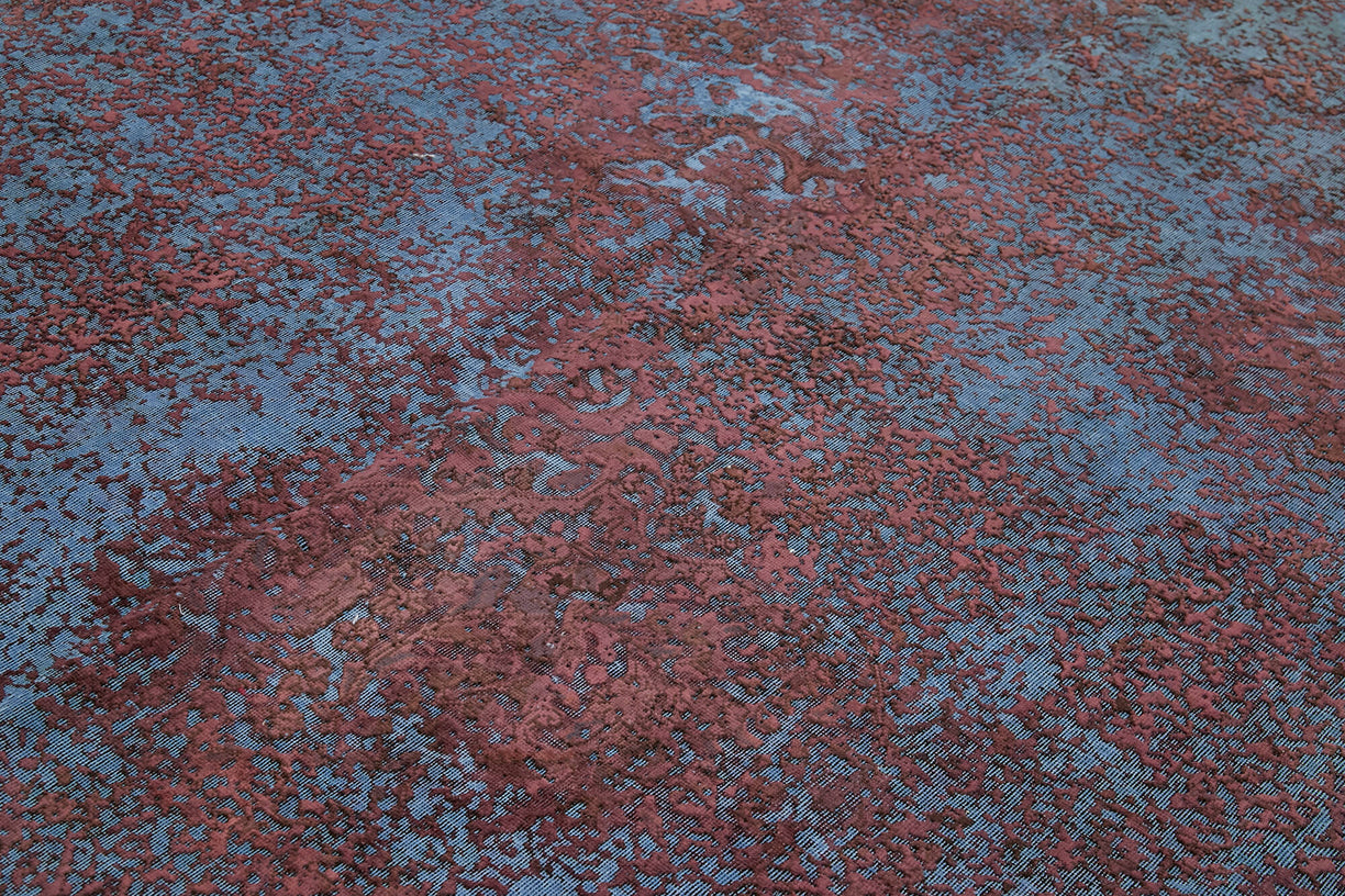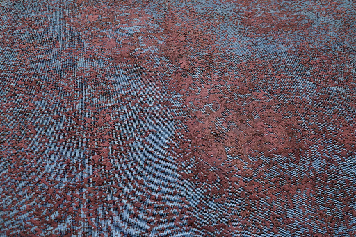 This purple over-dyed rug offers a contemporary look with abstract appeal, crafted from a hand-knotted vintage Oriental rug from the 1960s. it measures 9' 7'' x 12' 10''. The rug undergoes a unique process to lower the pile, desaturate the color, and achieve the perfect hue. This transformation bridges generations of artisanal skill, making it a unique statement piece for modern décor. All our vintage rugs are professionally cleaned before being added to our collection.