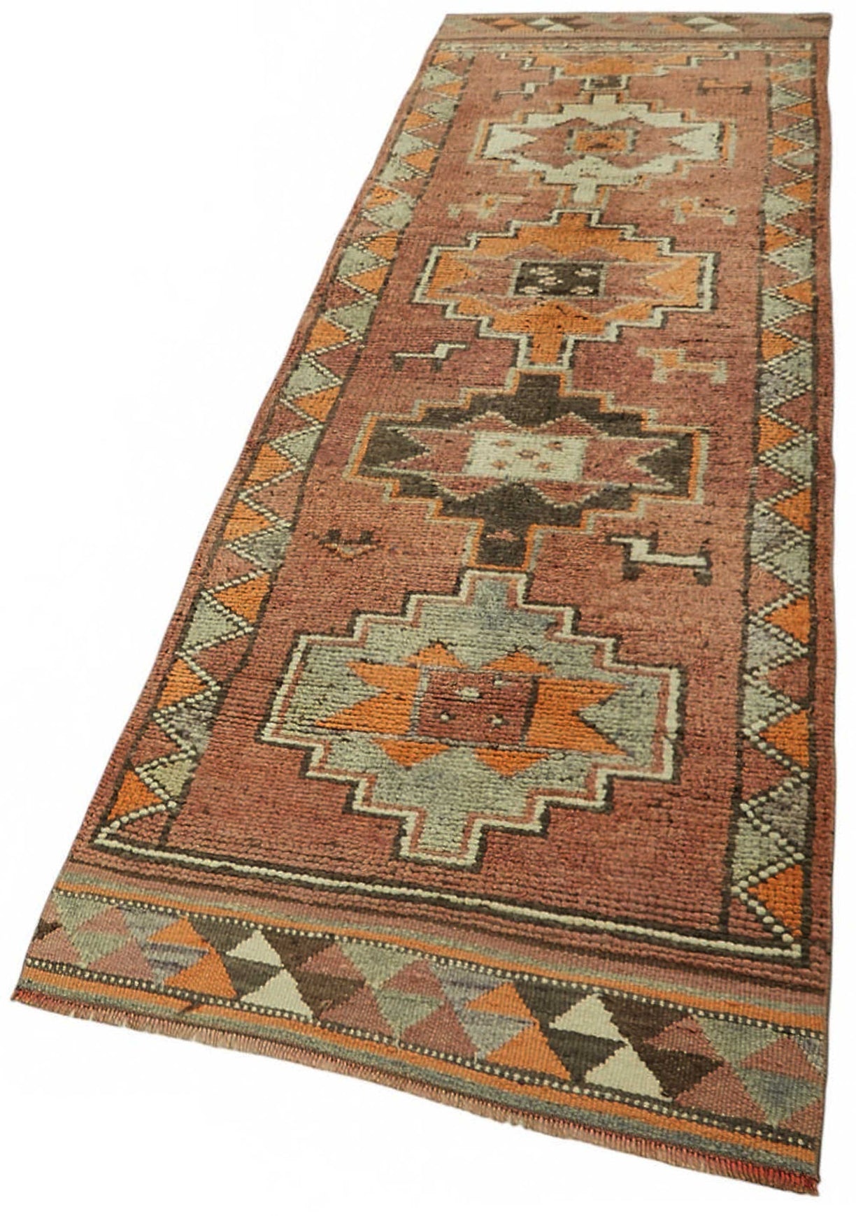 This exquisite runner rug is a rare example of tribal craftsmanship, hand-knotted by the women of the Herki tribe during the 1930s and 1940s. Made with exceptional-quality wool and tightly knotted to create a dense, medium-pile texture, these rugs are known for their lasting strength and luxurious feel underfoot.