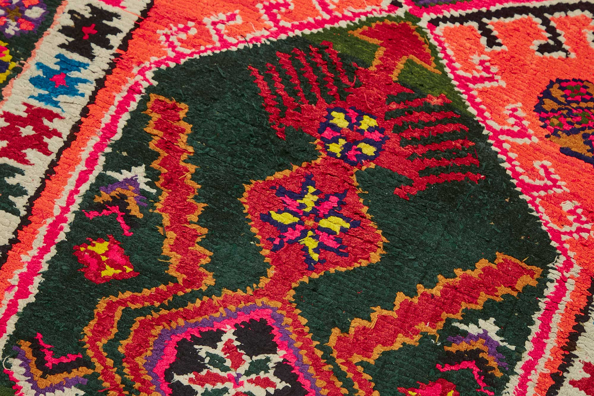 What truly sets Herki rugs apart is their vivid color palette—featuring bold reds, oranges, pinks, and hints of blue and grey—that reflects the artistic spirit and cultural expression of the tribe. The patterns are unique, abstract, and often symbolic, differing vastly from more traditional Anatolian or Persian designs.