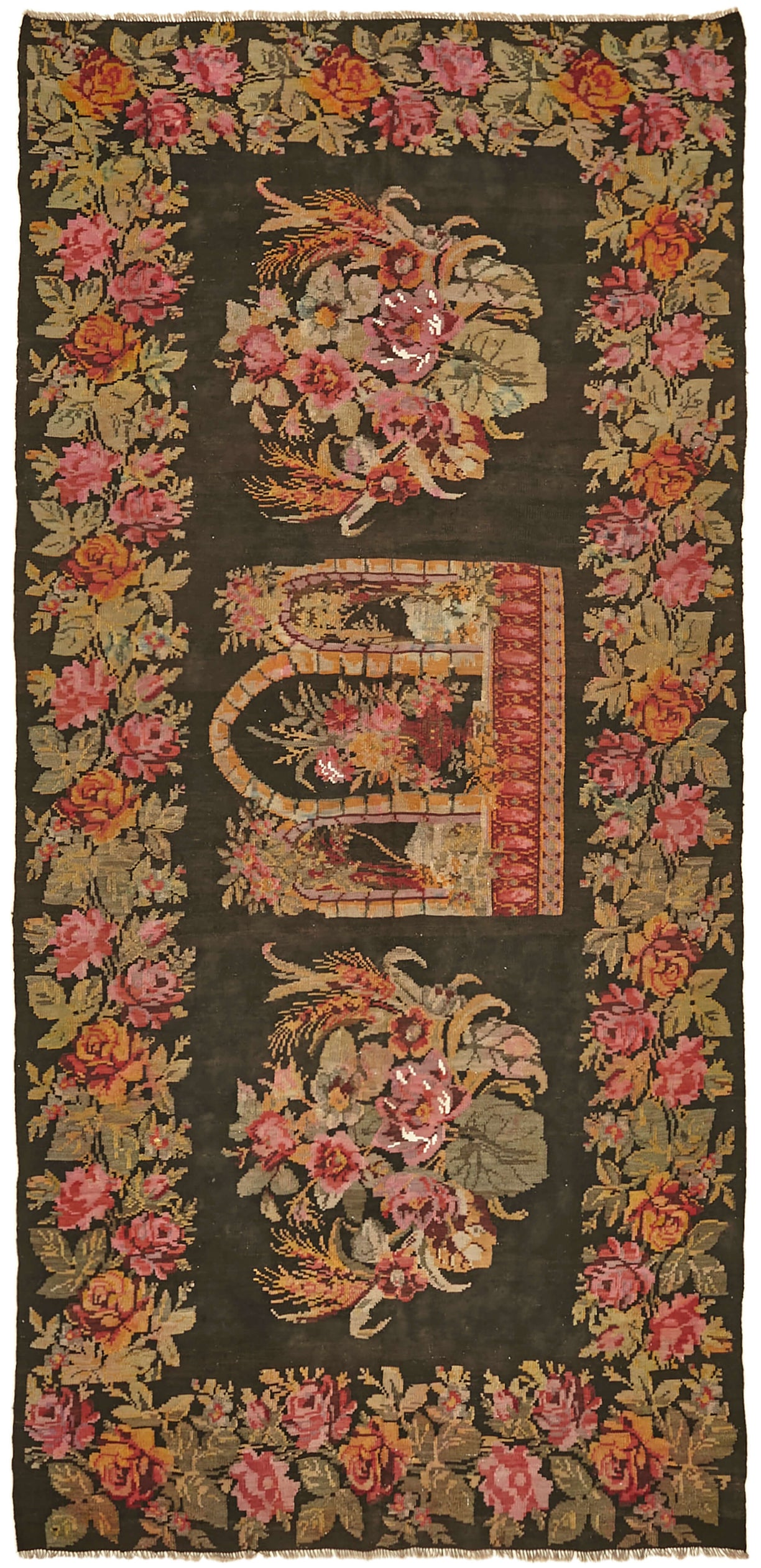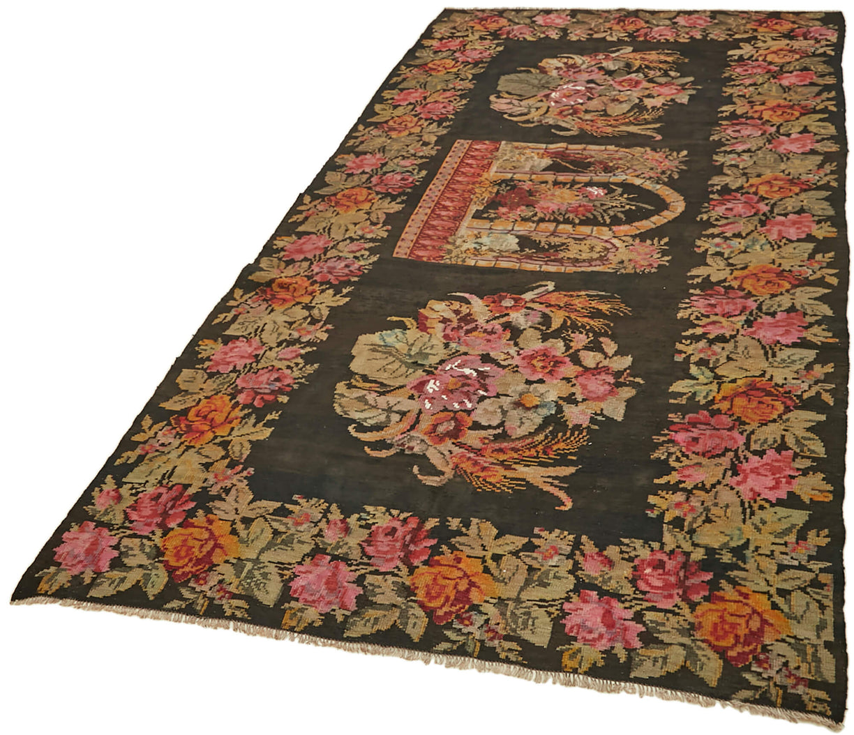 5' 5'' x 11' 3'' Handwoven Floral Rose Kilim Rug
