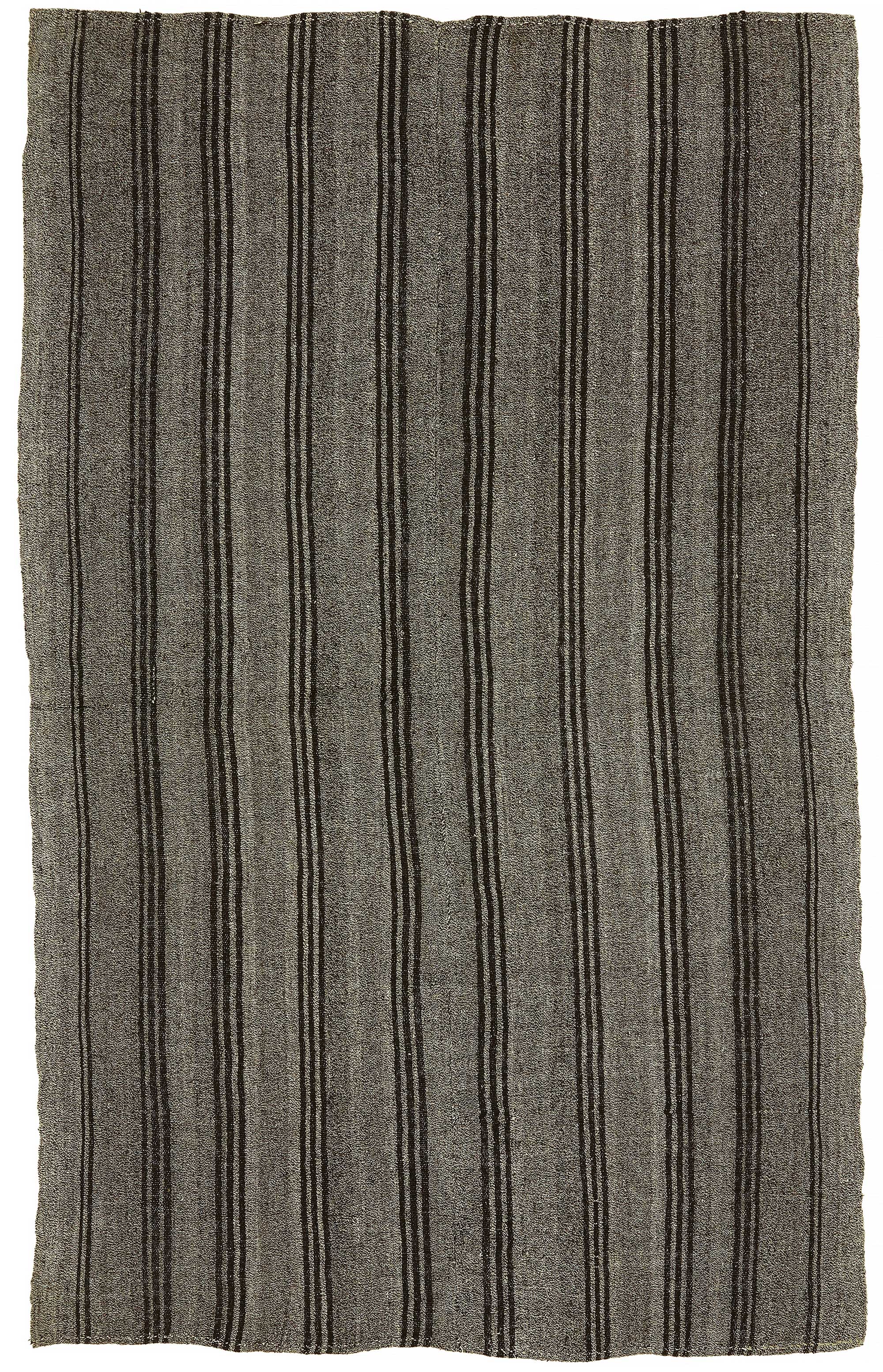 This handwoven kilim is crafted from a unique blend of goat hair and wool, a time-honored material combination used by Anatolian tribes for centuries. Known for its stiff, coarse texture, goat hair was traditionally used to make tents, saddle bags, and floor coverings due to its incredible durability and weather resistance.These vintage kilims, usually 40–60 years old, are perfect for high-traffic areas such as hallways, entryways, and office floors. The strong fiber structure allows the rug to lie flat and maintain its form over time.