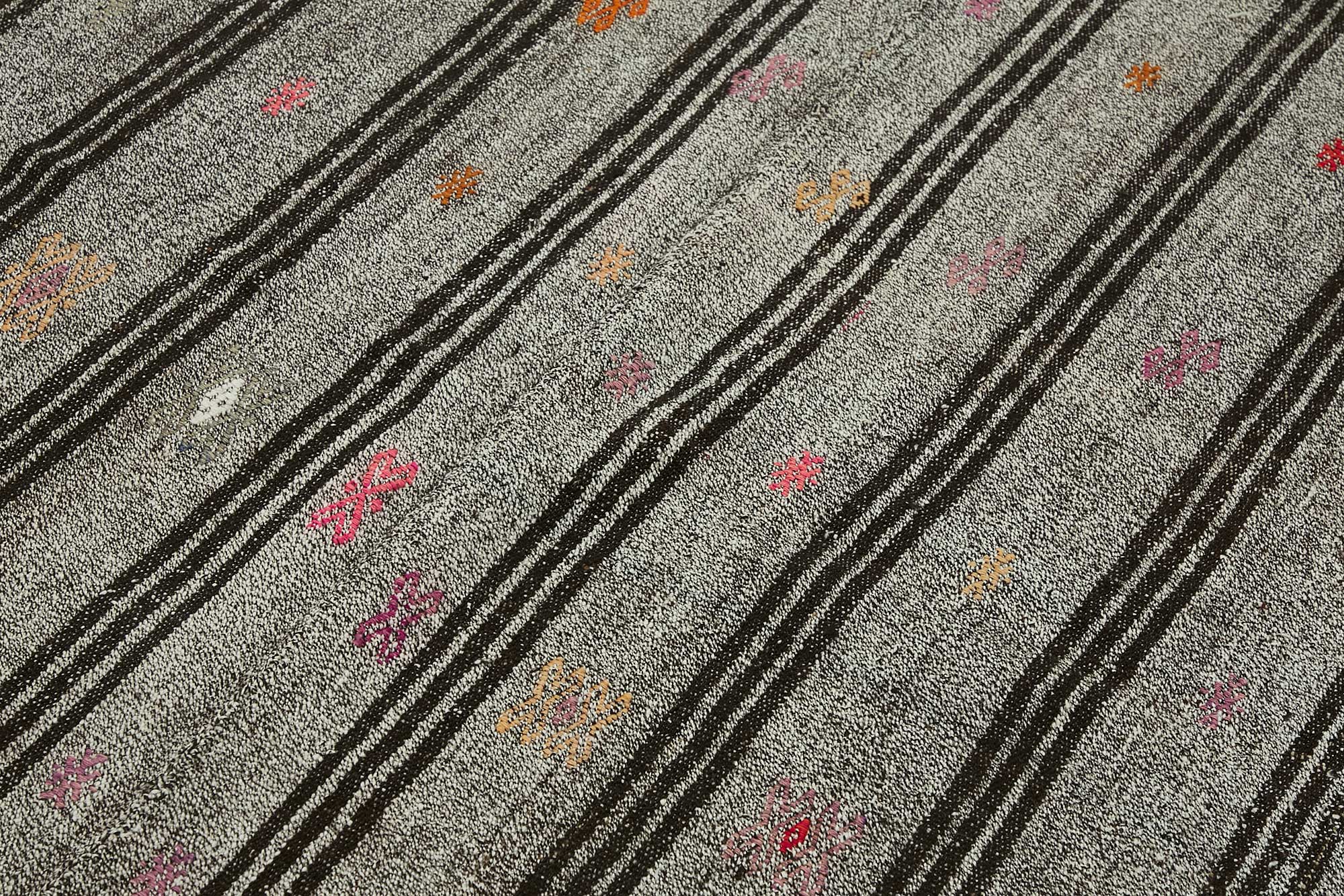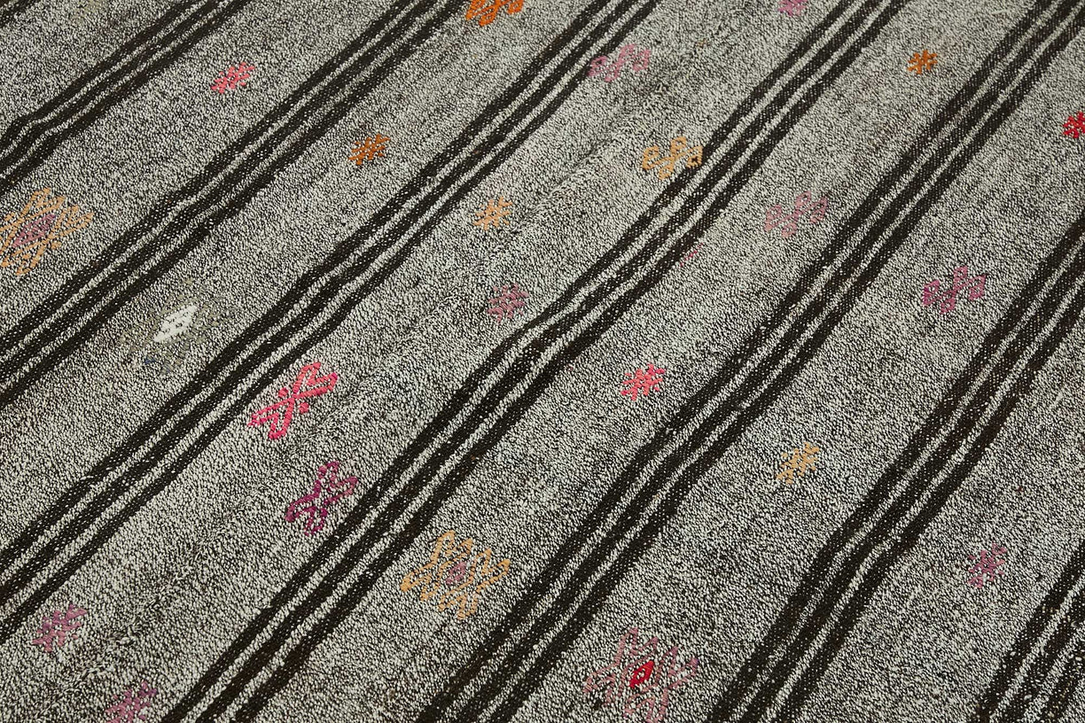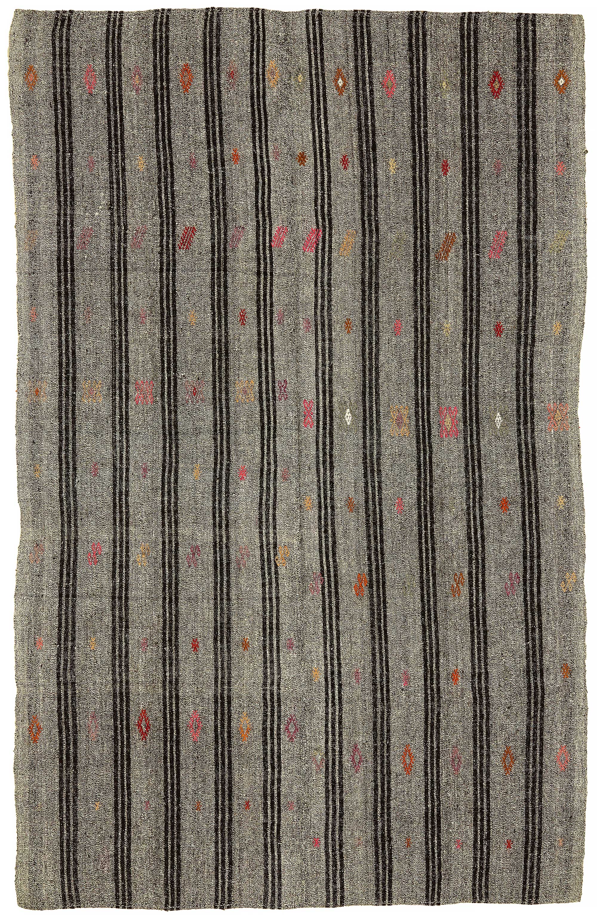 This handwoven kilim is crafted from a unique blend of goat hair and wool, a time-honored material combination used by Anatolian tribes for centuries. Known for its stiff, coarse texture, goat hair was traditionally used to make tents, saddle bags, and floor coverings due to its incredible durability and weather resistance.These vintage kilims, usually 40–60 years old, are perfect for high-traffic areas such as hallways, entryways, and office floors. The strong fiber structure allows the rug to lie flat and maintain its form over time.
