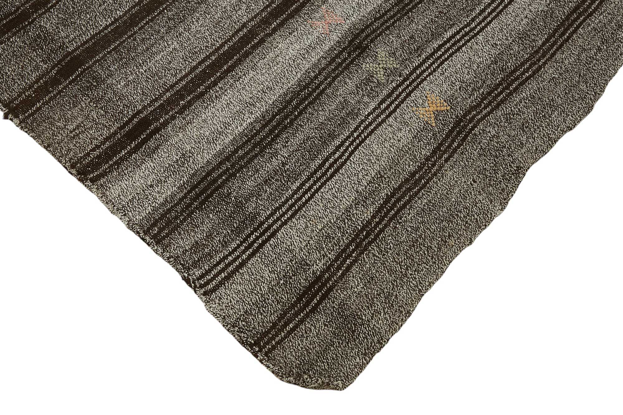 This handwoven kilim is crafted from a unique blend of goat hair and wool, a time-honored material combination used by Anatolian tribes for centuries. Known for its stiff, coarse texture, goat hair was traditionally used to make tents, saddle bags, and floor coverings due to its incredible durability and weather resistance.These vintage kilims, usually 40–60 years old, are perfect for high-traffic areas such as hallways, entryways, and office floors. The strong fiber structure allows the rug to lie flat and maintain its form over time.
