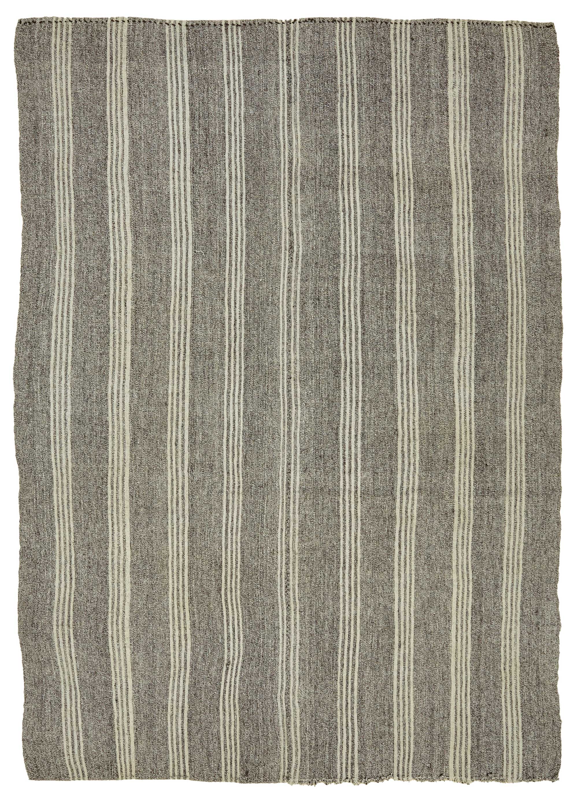 This handwoven kilim is crafted from a unique blend of goat hair and wool, a time-honored material combination used by Anatolian tribes for centuries. Known for its stiff, coarse texture, goat hair was traditionally used to make tents, saddle bags, and floor coverings due to its incredible durability and weather resistance.These vintage kilims, usually 40–60 years old, are perfect for high-traffic areas such as hallways, entryways, and office floors. The strong fiber structure allows the rug to lie flat and maintain its form over time.