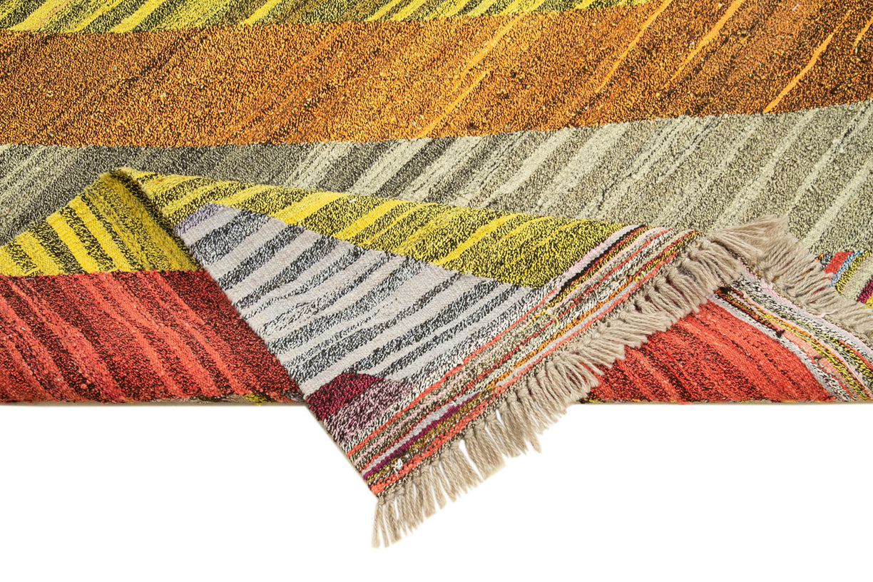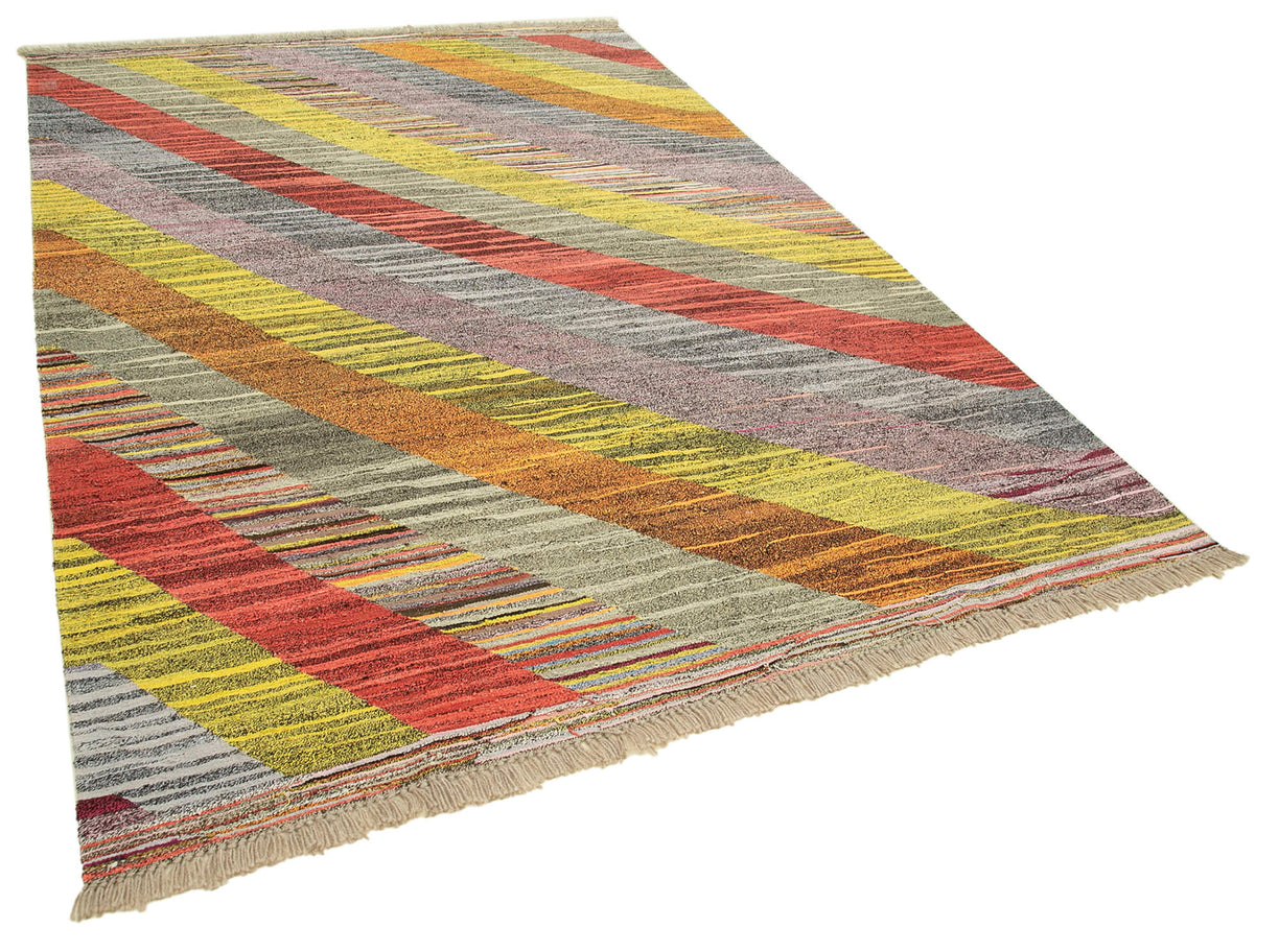 Experience the charm of modern design with our handmade Turkish kilim, made from the finest unraveled wool for a soft, luxurious feel. This kilim features a contemporary pattern that brings a fresh, stylish look to any space, from living rooms to bedrooms. The handwoven craftsmanship adds a unique texture, making each kilim a one-of-a-kind piece that enhances your home décor. With its durable wool construction and timeless design, this kilim is not just a decorative piece but an investment in quality and style.