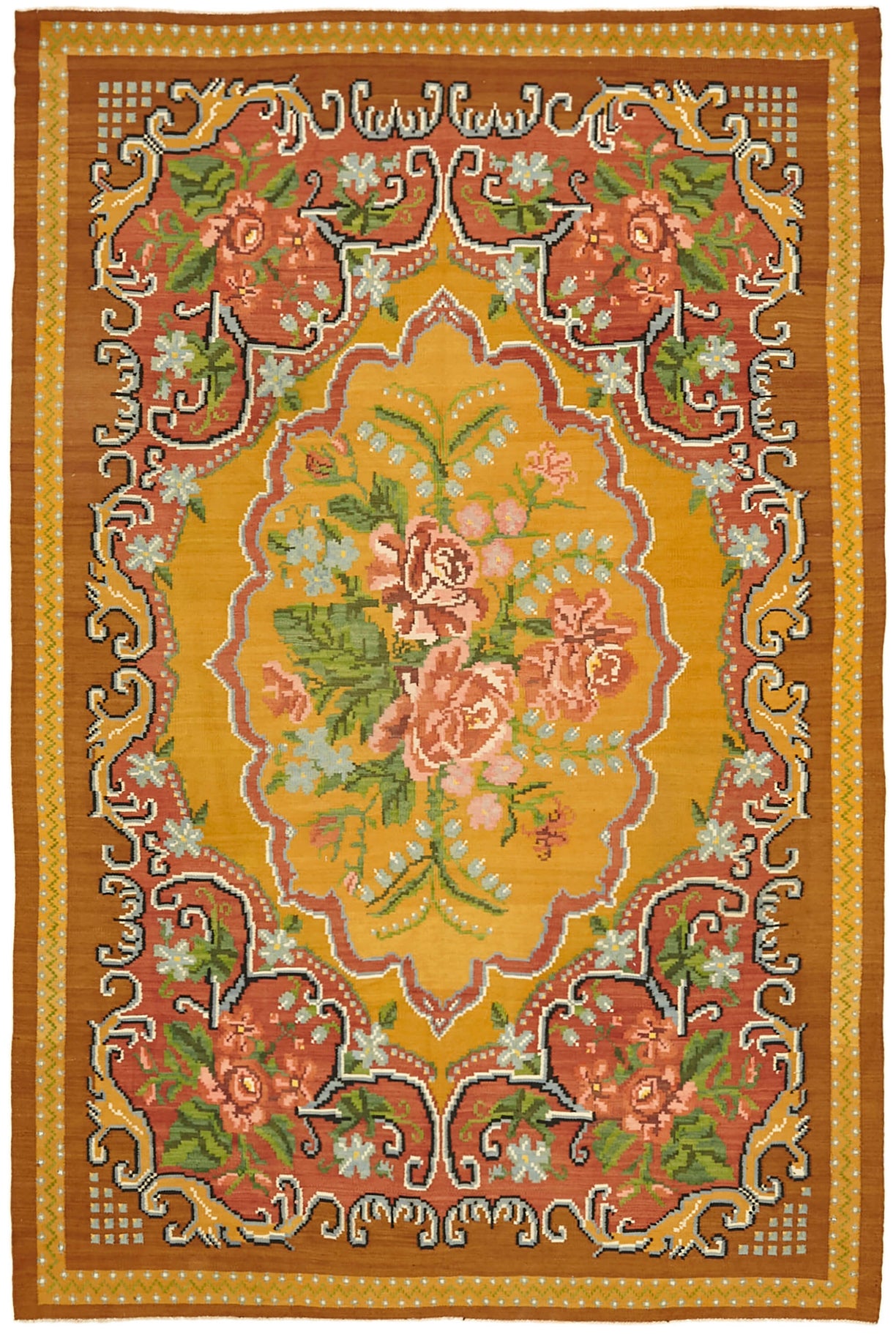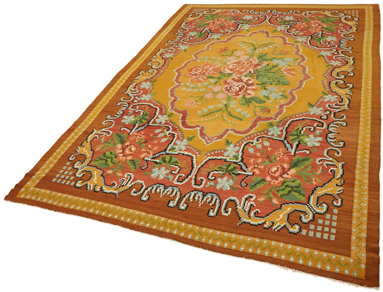 6' 7'' x 9' 9'' Handmade Floral Tapestry Kilim