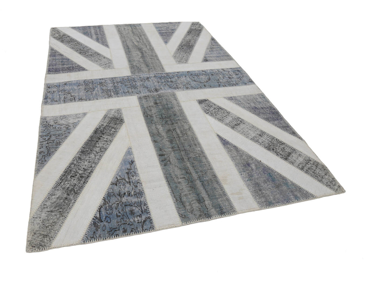 7x10 British Flag Hand-Knotted Patchwork Rug -22629