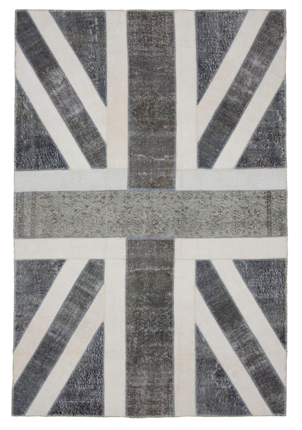 7x10 British Flag Hand-Knotted Patchwork Rug -22644