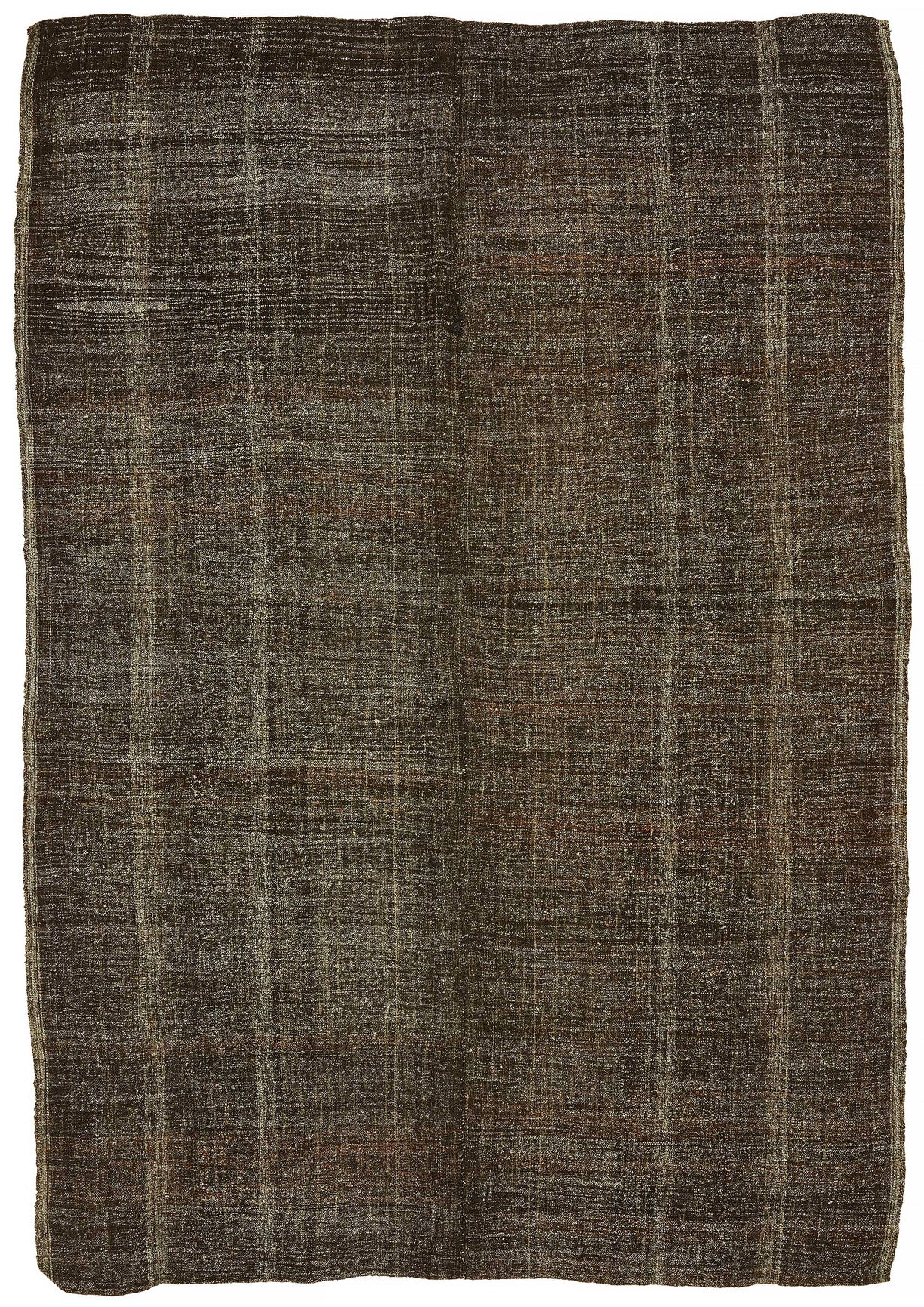 This handwoven kilim is crafted from a unique blend of goat hair and wool, a time-honored material combination used by Anatolian tribes for centuries. Known for its stiff, coarse texture, goat hair was traditionally used to make tents, saddle bags, and floor coverings due to its incredible durability and weather resistance.These vintage kilims, usually 40–60 years old, are perfect for high-traffic areas such as hallways, entryways, and office floors. The strong fiber structure allows the rug to lie flat and maintain its form over time.