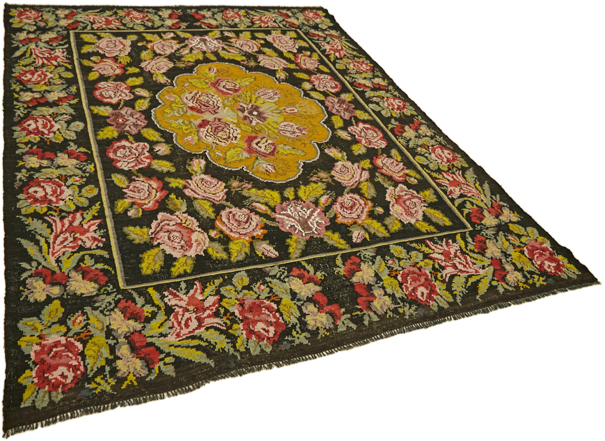 Charming Floral Handwoven Wool Rug from the 1970s, hand-crafted with intricate floral designs and a warm, inviting color scheme. This well-preserved vintage rug complements both bohemian and eclectic interiors. Enhance its longevity with a rug pad.