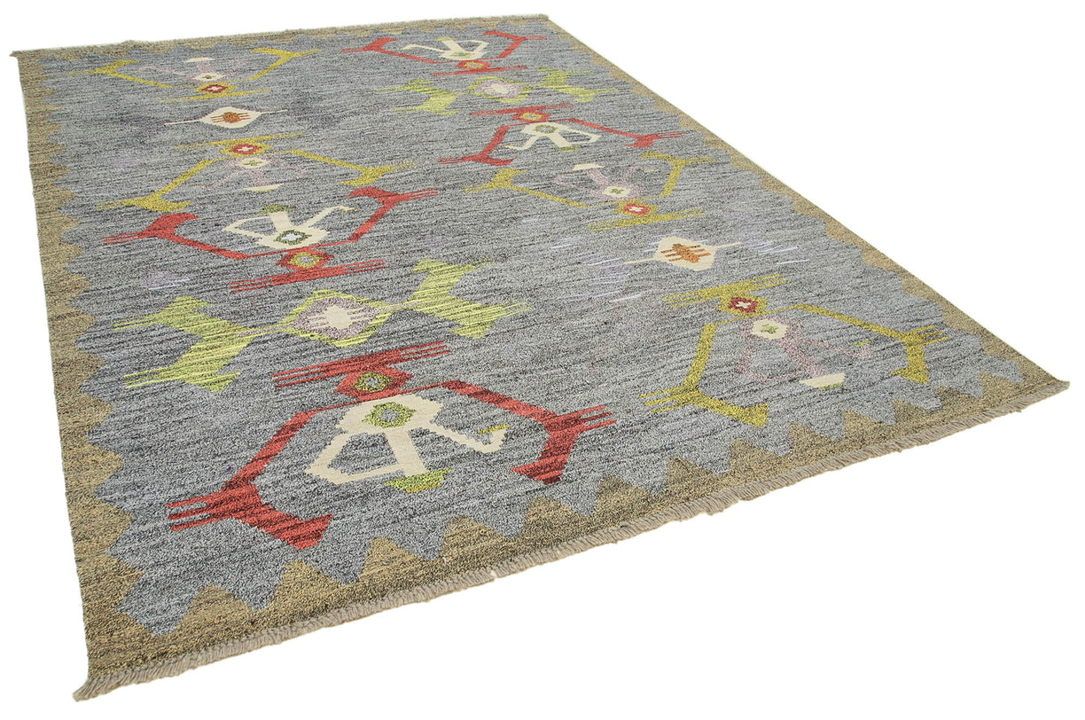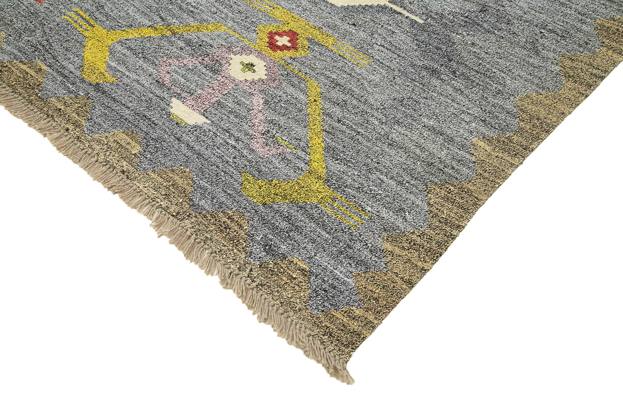 Experience the charm of modern design with our handmade Turkish kilim, made from the finest unraveled wool for a soft, luxurious feel. This kilim features a contemporary pattern that brings a fresh, stylish look to any space, from living rooms to bedrooms. The handwoven craftsmanship adds a unique texture, making each kilim a one-of-a-kind piece that enhances your home décor. With its durable wool construction and timeless design, this kilim is not just a decorative piece but an investment in quality and style.
