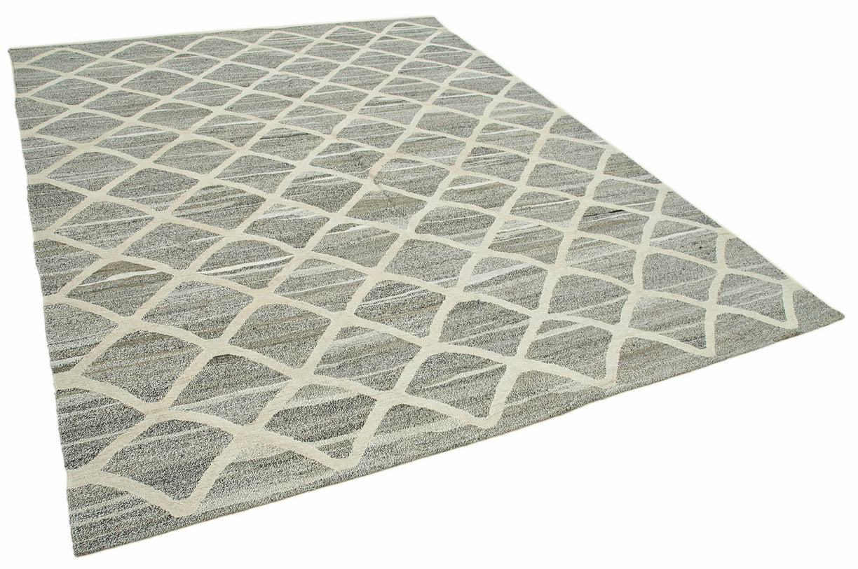 Step into a world of luxury with our handwoven modern Turkish kilim, where modern design meets traditional craftsmanship. Made with the finest unraveled wool, this kilim features a sleek, contemporary pattern that elevates any space with its understated elegance. The handwoven texture brings a unique tactile quality, while the durable wool construction ensures it remains a centerpiece in your home for years. Ideal for those who appreciate the fusion of modern aesthetics and time-honored techniques, this kilim is a true work of art.