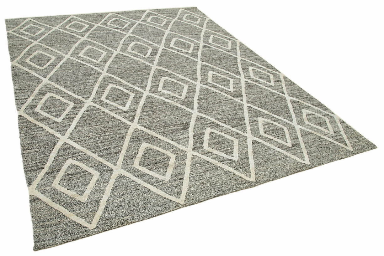Step into a world of luxury with our handwoven modern Turkish kilim, where modern design meets traditional craftsmanship. Made with the finest unraveled wool, this kilim features a sleek, contemporary pattern that elevates any space with its understated elegance. The handwoven texture brings a unique tactile quality, while the durable wool construction ensures it remains a centerpiece in your home for years. Ideal for those who appreciate the fusion of modern aesthetics and time-honored techniques, this kilim is a true work of art.