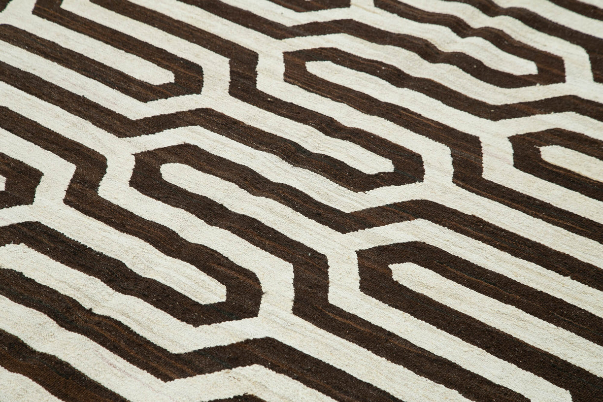 Step into a world of luxury with our handwoven modern Turkish kilim, where modern design meets traditional craftsmanship. Made with the finest unraveled wool, this kilim features a sleek, contemporary pattern that elevates any space with its understated elegance. The handwoven texture brings a unique tactile quality, while the durable wool construction ensures it remains a centerpiece in your home for years. Ideal for those who appreciate the fusion of modern aesthetics and time-honored techniques, this kilim is a true work of art.