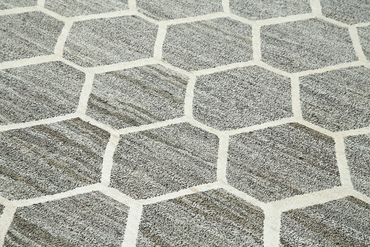 Our handwoven Turkish kilim rug is a masterpiece of modern design, created using the finest unraveled wool for unmatched quality and durability. This kilim features a sleek, contemporary pattern that adds a stylish touch to any room, from living areas to bedrooms. The soft, plush texture invites you to sink your feet into comfort while the resilient wool ensures it withstands the test of time. This kilim is ideal for those who seek a harmonious blend of luxury, comfort, and modern aesthetics in their home decor.