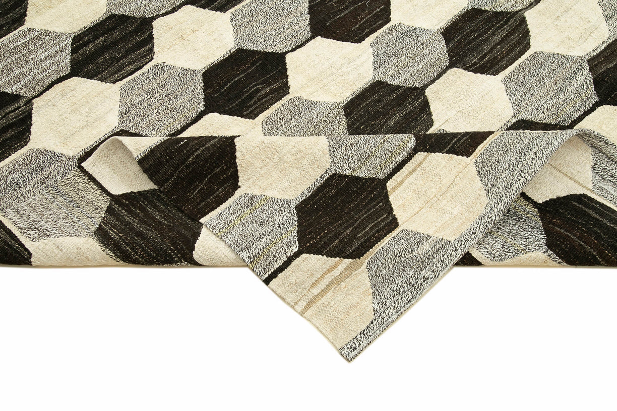 Our handwoven Turkish kilim rug is a masterpiece of modern design, created using the finest unraveled wool for unmatched quality and durability. This kilim features a sleek, contemporary pattern that adds a stylish touch to any room, from living areas to bedrooms. The soft, plush texture invites you to sink your feet into comfort while the resilient wool ensures it withstands the test of time. This kilim is ideal for those who seek a harmonious blend of luxury, comfort, and modern aesthetics in their home decor.