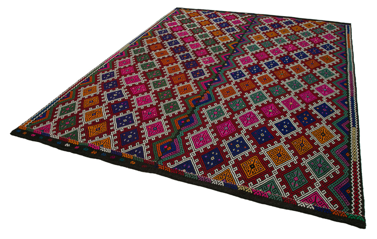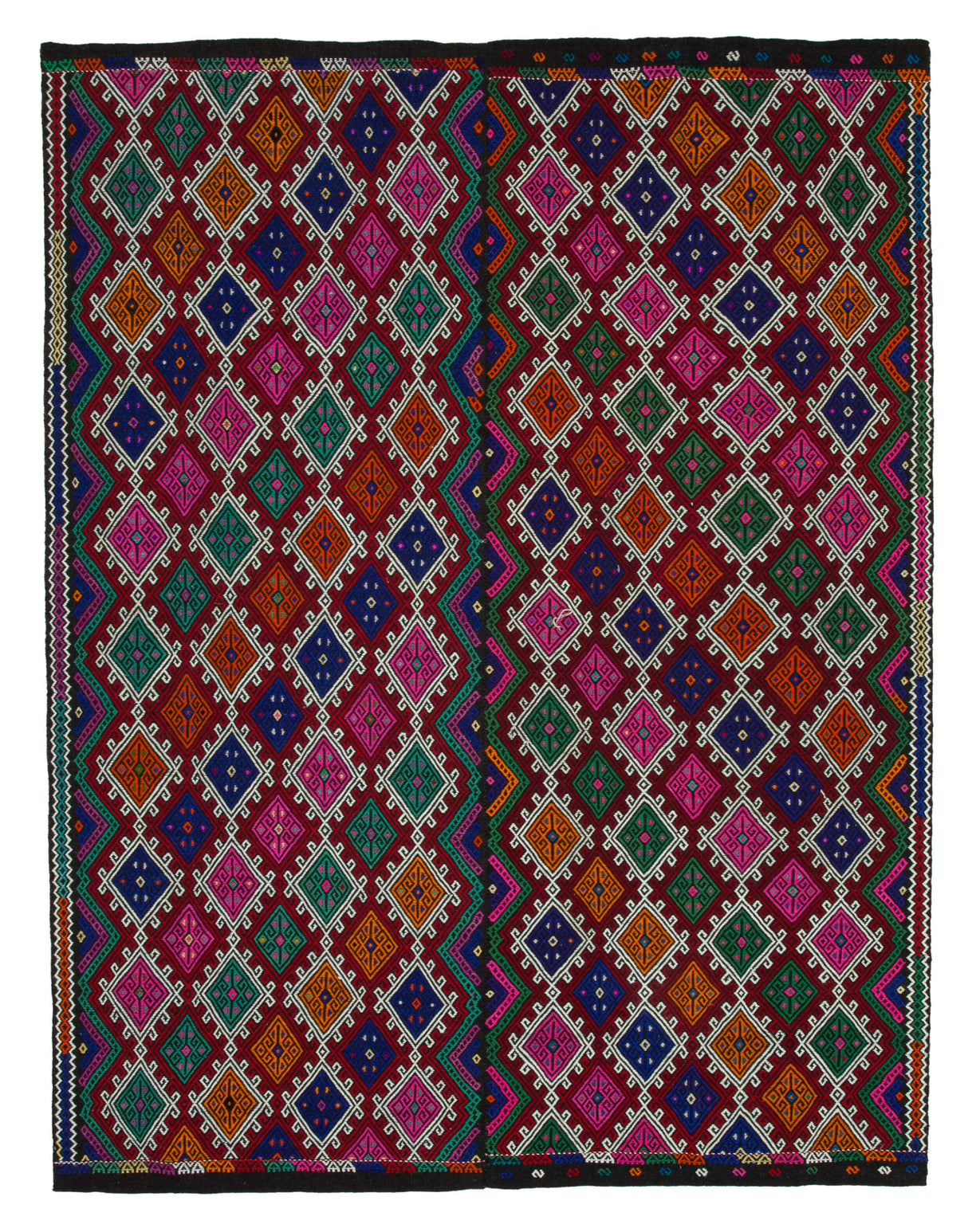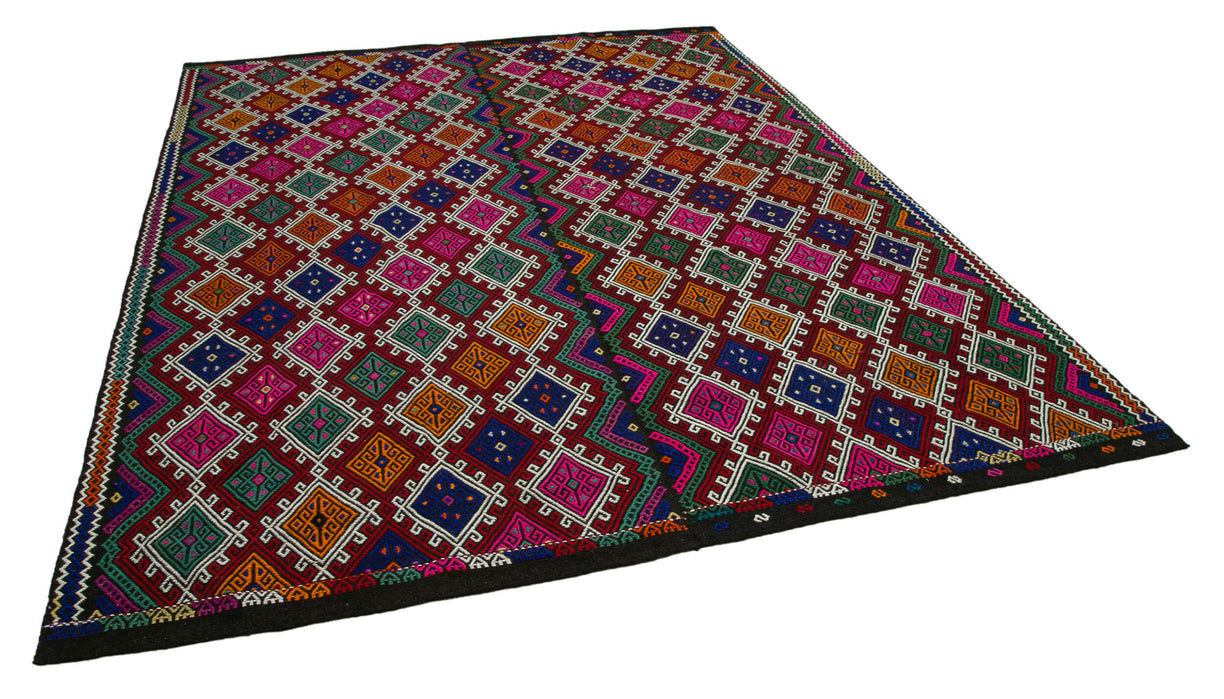 Discover the timeless beauty of our Jijim Kilims, handwoven by artisans in Anatolia, Turkey, 30-40 years ago. These vintage pieces are crafted using a traditional flat-weave technique, enriched with intricate embroidered patterns that add depth and texture. Each kilim reflects the rich cultural heritage of Anatolia, featuring vibrant geometric designs and high-quality wool. These unique rugs are more than just floor coverings—they're pieces of history that bring warmth and character to any interior.