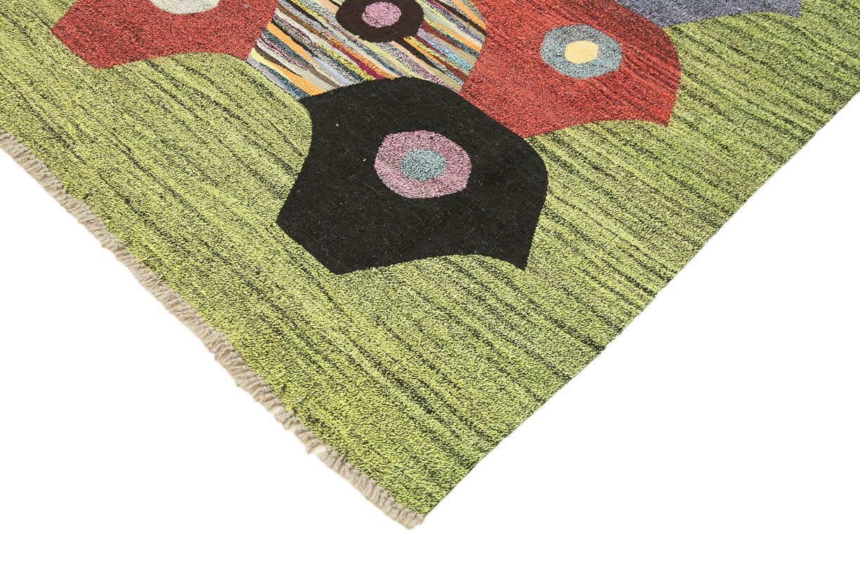 Experience the charm of modern design with our handmade Turkish kilim, made from the finest unraveled wool for a soft, luxurious feel. This kilim features a contemporary pattern that brings a fresh, stylish look to any space, from living rooms to bedrooms. The handwoven craftsmanship adds a unique texture, making each kilim a one-of-a-kind piece that enhances your home décor. With its durable wool construction and timeless design, this kilim is not just a decorative piece but an investment in quality and style.