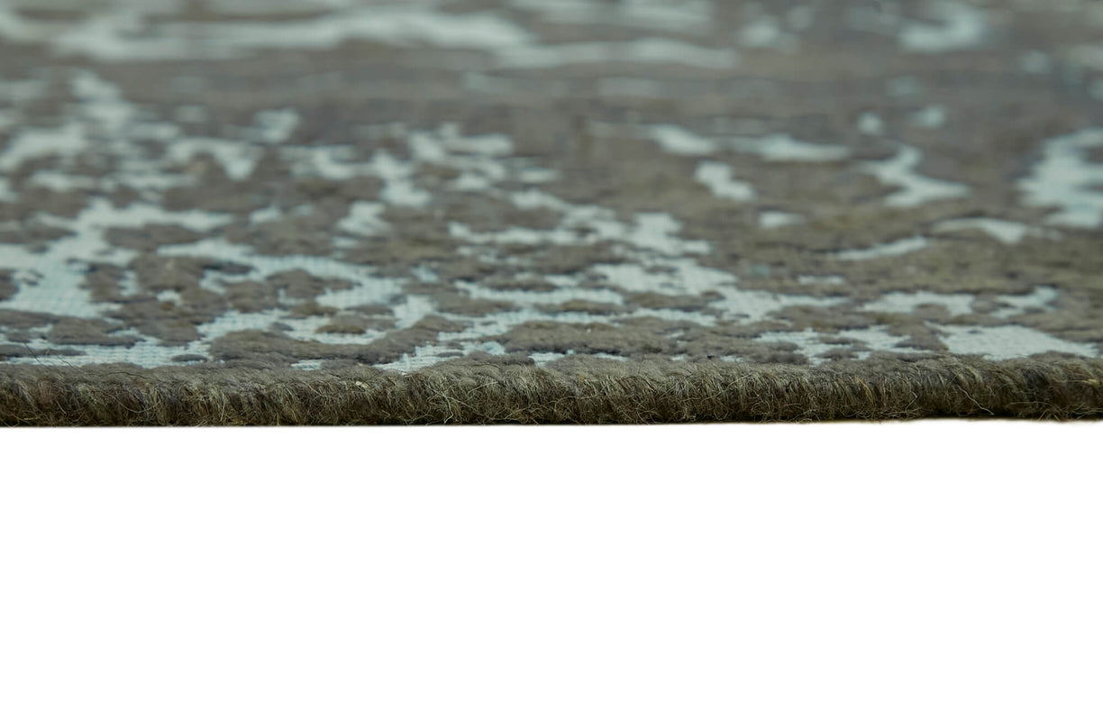 This grey over-dyed rug offers a contemporary look with abstract appeal, crafted from a hand-knotted vintage Oriental rug from the 1960s. it measures 8' 10'' x 12' 2''. The rug undergoes a unique process to lower the pile, desaturate the color, and achieve the perfect hue. This transformation bridges generations of artisanal skill, making it a unique statement piece for modern décor. All our vintage rugs are professionally cleaned before being added to our collection.