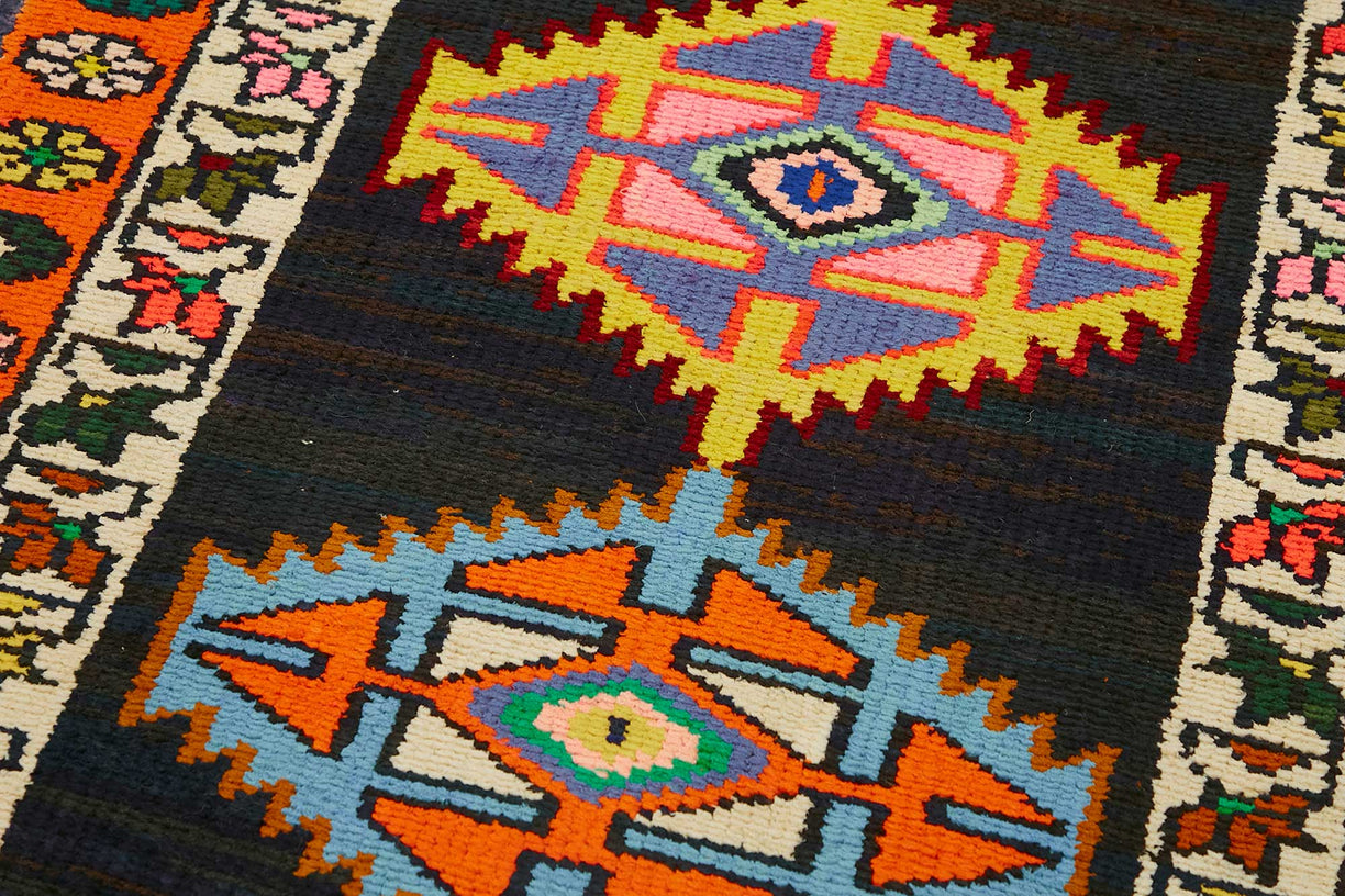 What truly sets Herki rugs apart is their vivid color palette—featuring bold reds, oranges, pinks, and hints of blue and grey—that reflects the artistic spirit and cultural expression of the tribe. The patterns are unique, abstract, and often symbolic, differing vastly from more traditional Anatolian or Persian designs.