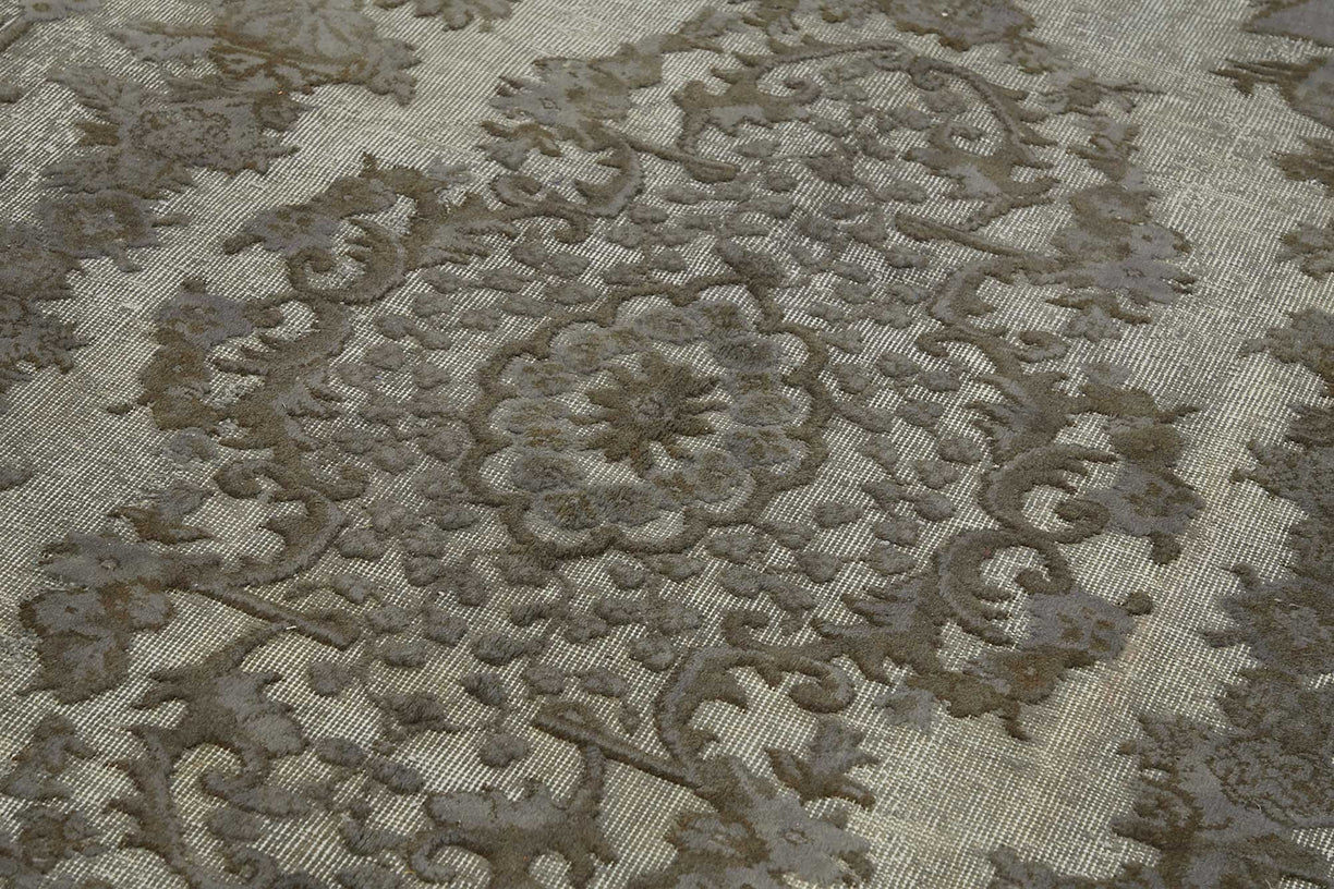 Carved and Hi-Low Pile rugs are crafted from double-knotted Turkish carpets, originally handwoven 30 to 70 years ago. Each piece is carefully selected for its structure and quality, then goes through a thorough cleaning and washing process to preserve its integrity before transformation begins.Following the neutralization of original dyes, the surface is overdyed with contemporary colors, using natural, environmentally friendly dyes. What distinguishes these rugs is the carving technique applied to specific areas of the pattern. Some sections are meticulously shaved, while others are left with their original pile height, resulting in a layered, dimensional texture.This contrast of surface levels adds a sculptural quality to the design, creating a look that is both modern and artisanal. The interplay of light and shadow across the rug’s texture enhances its visual depth, making it a striking element in minimalist and contemporary interiors.