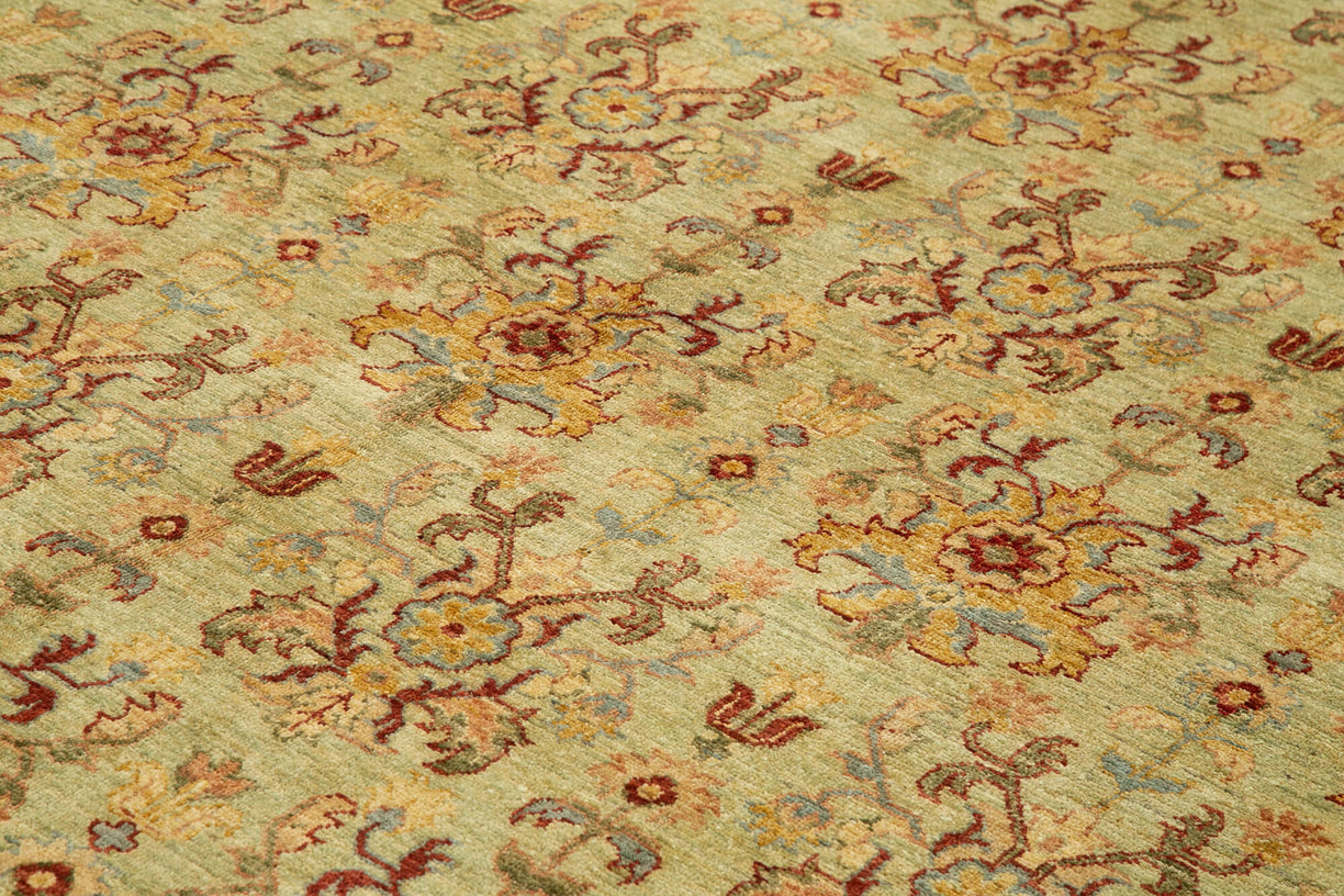 Oushak rugs are renowned for their distinctive designs and high-quality craftsmanship. They are typically characterized by large-scale, floral motifs and a soft, muted color palette, often featuring hues of ivory, gold, blues, and soft reds. These rugs are hand-knotted using wool, which gives them a luxurious texture and durability. The designs often exhibit a blend of geometric and curvilinear patterns, reflecting a fusion of both traditional and contemporary aesthetics. Oushak rugs are highly prized for their elegance and timeless appeal, making them a favored choice for sophisticated home decor.