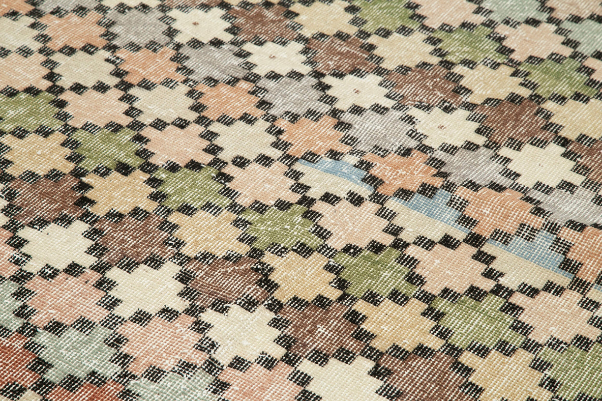 Elevate your home with our Turkish boho rug, featuring intricate design and soft, muted colors for a subtle yet elegant touch. Woven with wool on a cotton foundation, this vintage rug is approximately 30-40 years old, showcasing the rich tradition of Turkish craftsmanship. Its gently distressed look enhances its character and vintage appeal, making it a perfect fit for both modern and bohemian interiors. Each rug adds warmth, history, and understated beauty to your living space, creating a serene and timeless atmosphere.