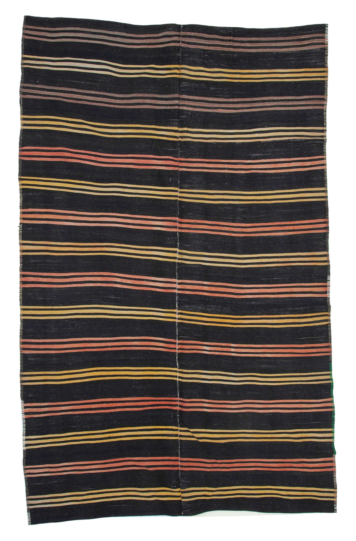 This handwoven kilim is crafted from a unique blend of goat hair and wool, a time-honored material combination used by Anatolian tribes for centuries. Known for its stiff, coarse texture, goat hair was traditionally used to make tents, saddle bags, and floor coverings due to its incredible durability and weather resistance.These vintage kilims, usually 40–60 years old, are perfect for high-traffic areas such as hallways, entryways, and office floors. The strong fiber structure allows the rug to lie flat and maintain its form over time.