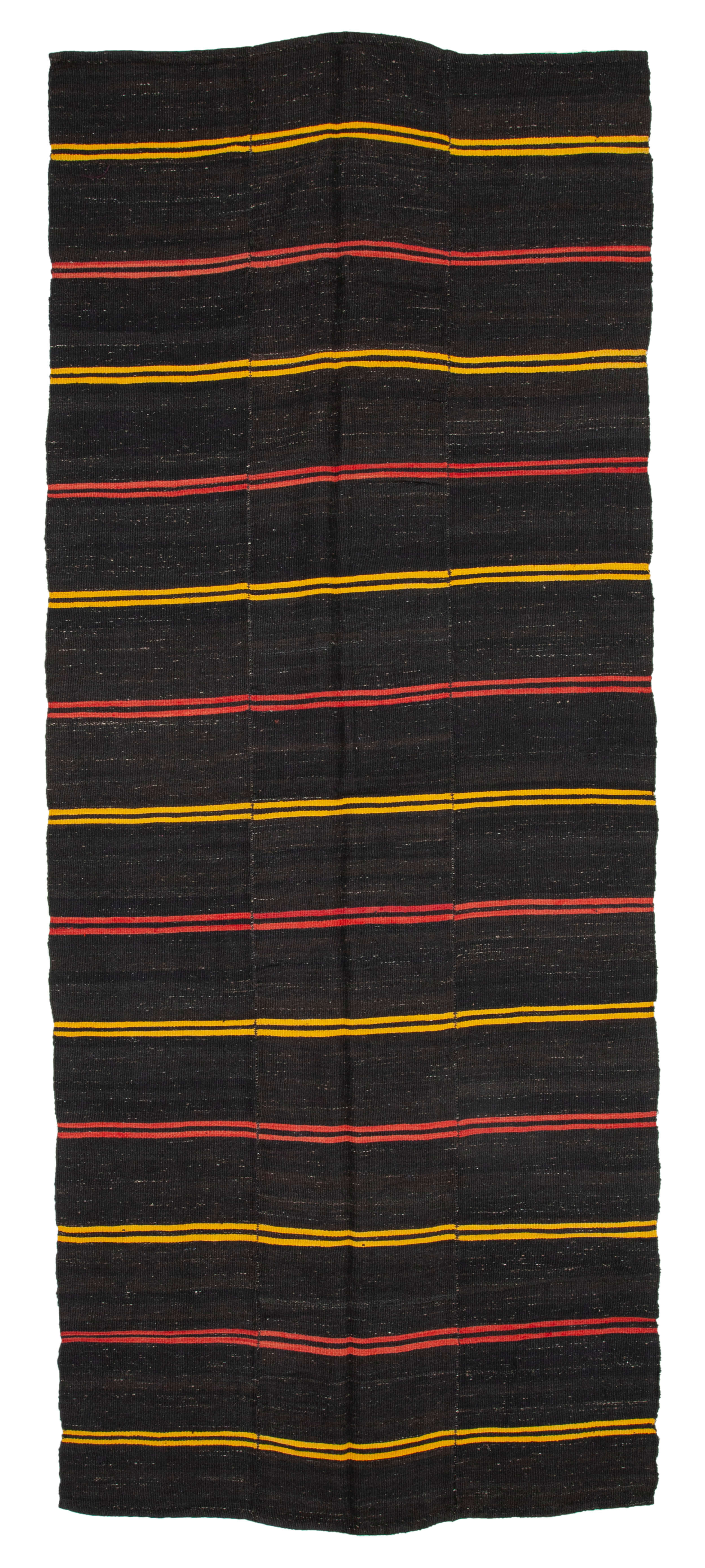 This handwoven kilim is crafted from a unique blend of goat hair and wool, a time-honored material combination used by Anatolian tribes for centuries. Known for its stiff, coarse texture, goat hair was traditionally used to make tents, saddle bags, and floor coverings due to its incredible durability and weather resistance.These vintage kilims, usually 40–60 years old, are perfect for high-traffic areas such as hallways, entryways, and office floors. The strong fiber structure allows the rug to lie flat and maintain its form over time.