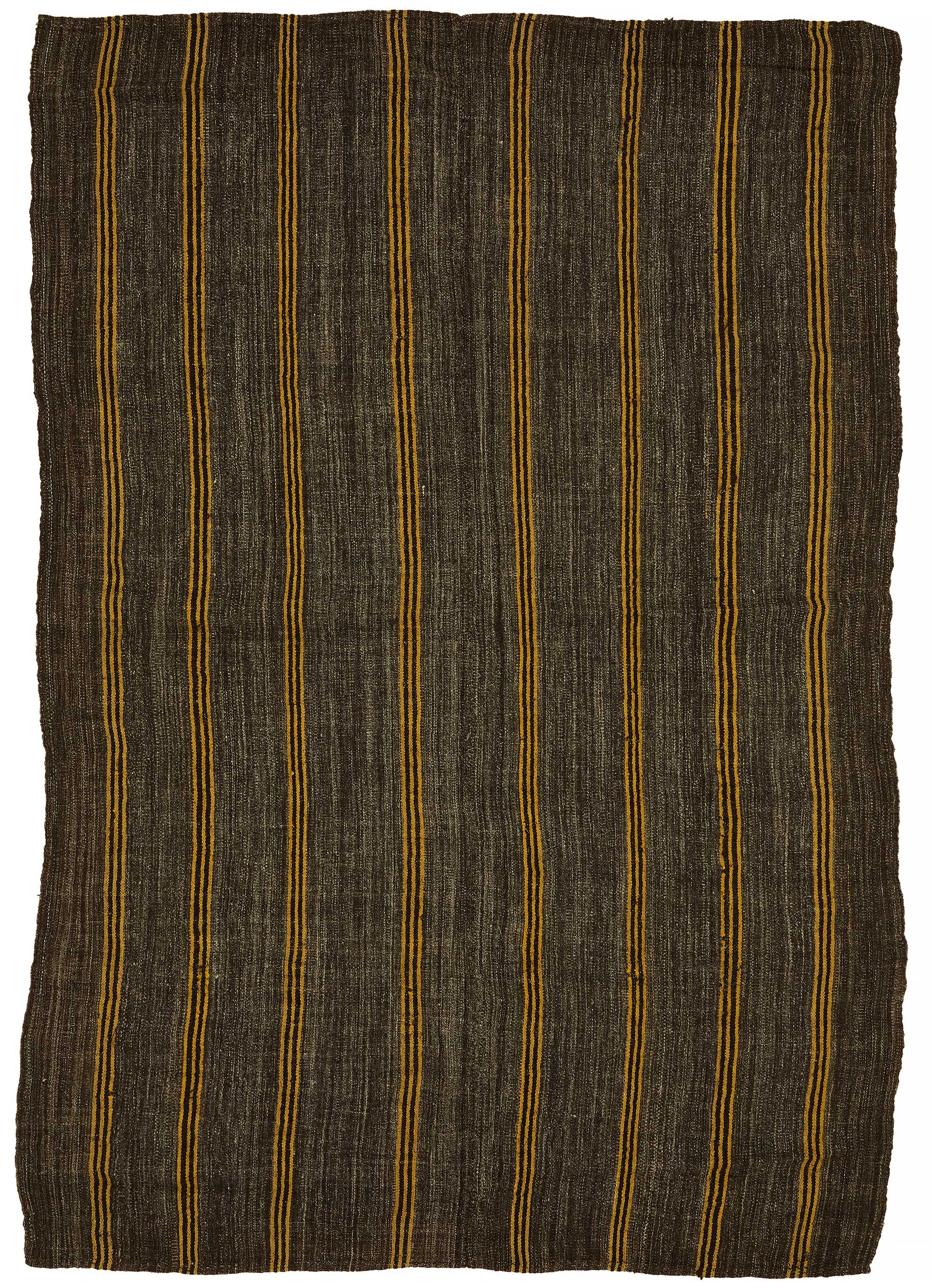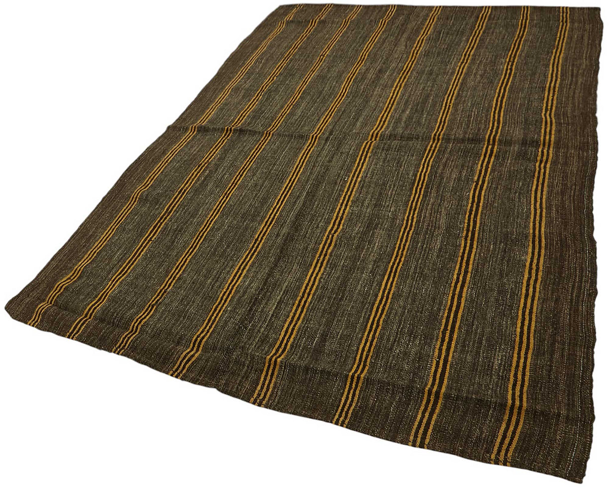 This handwoven kilim is crafted from a unique blend of goat hair and wool, a time-honored material combination used by Anatolian tribes for centuries. Known for its stiff, coarse texture, goat hair was traditionally used to make tents, saddle bags, and floor coverings due to its incredible durability and weather resistance.These vintage kilims, usually 40–60 years old, are perfect for high-traffic areas such as hallways, entryways, and office floors. The strong fiber structure allows the rug to lie flat and maintain its form over time.