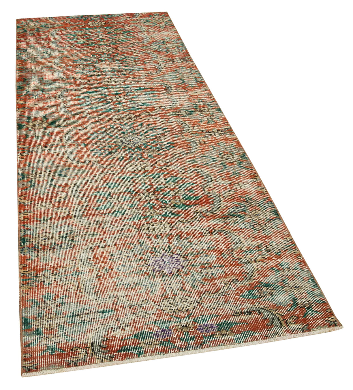 Vintage handmade runner rugs are exquisite, handwoven pieces adorned with traditional Turkish patterns. They acquire vibrant, modern colors through a meticulous over-dying process while retaining a hint of their rich historical charm. These rugs are durable and incredibly versatile, seamlessly blending classic and contemporary styles. Perfect for hallways, entryways, and stairways, they add warmth and character to any space, infusing it with a timeless elegance that captivates the eye.