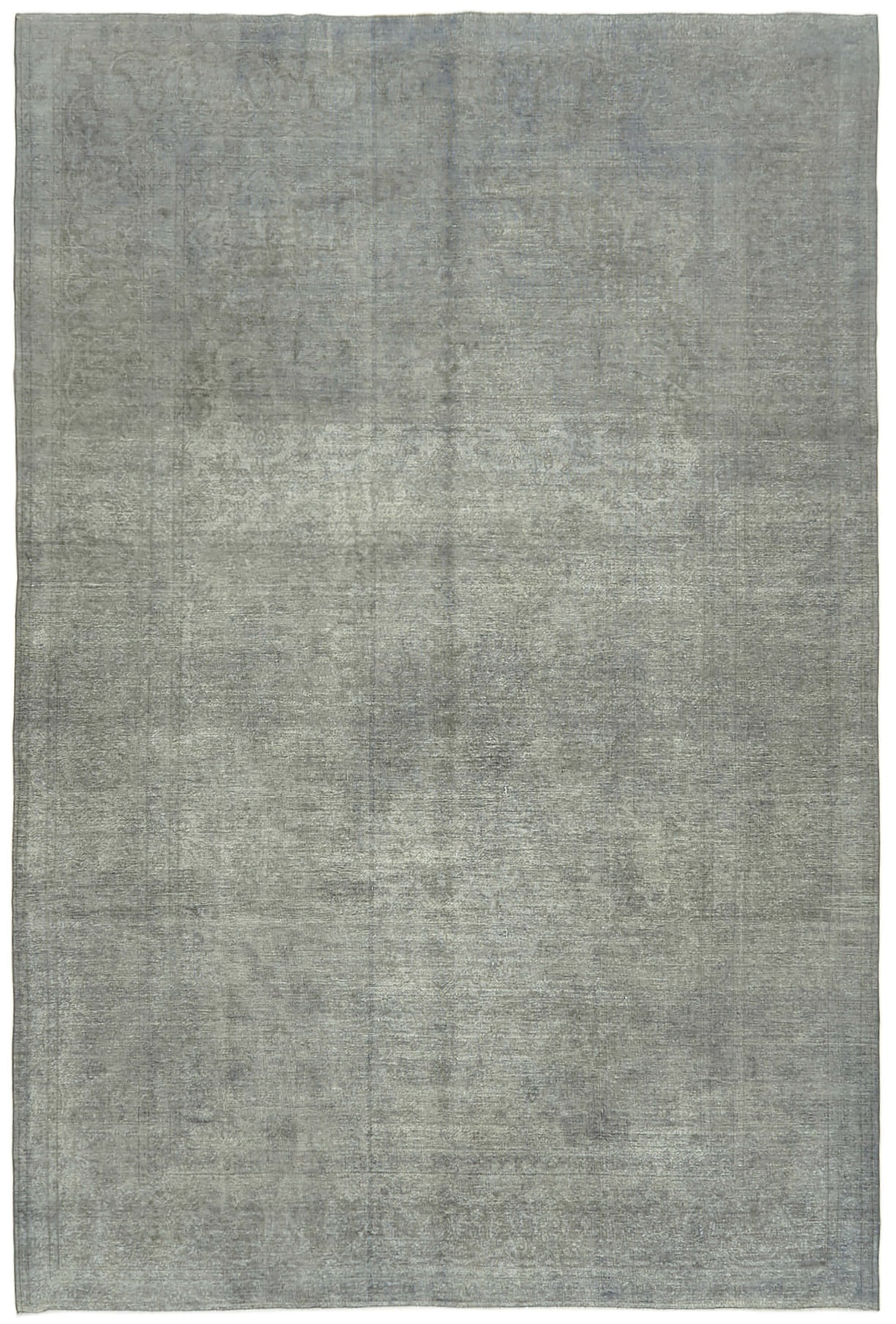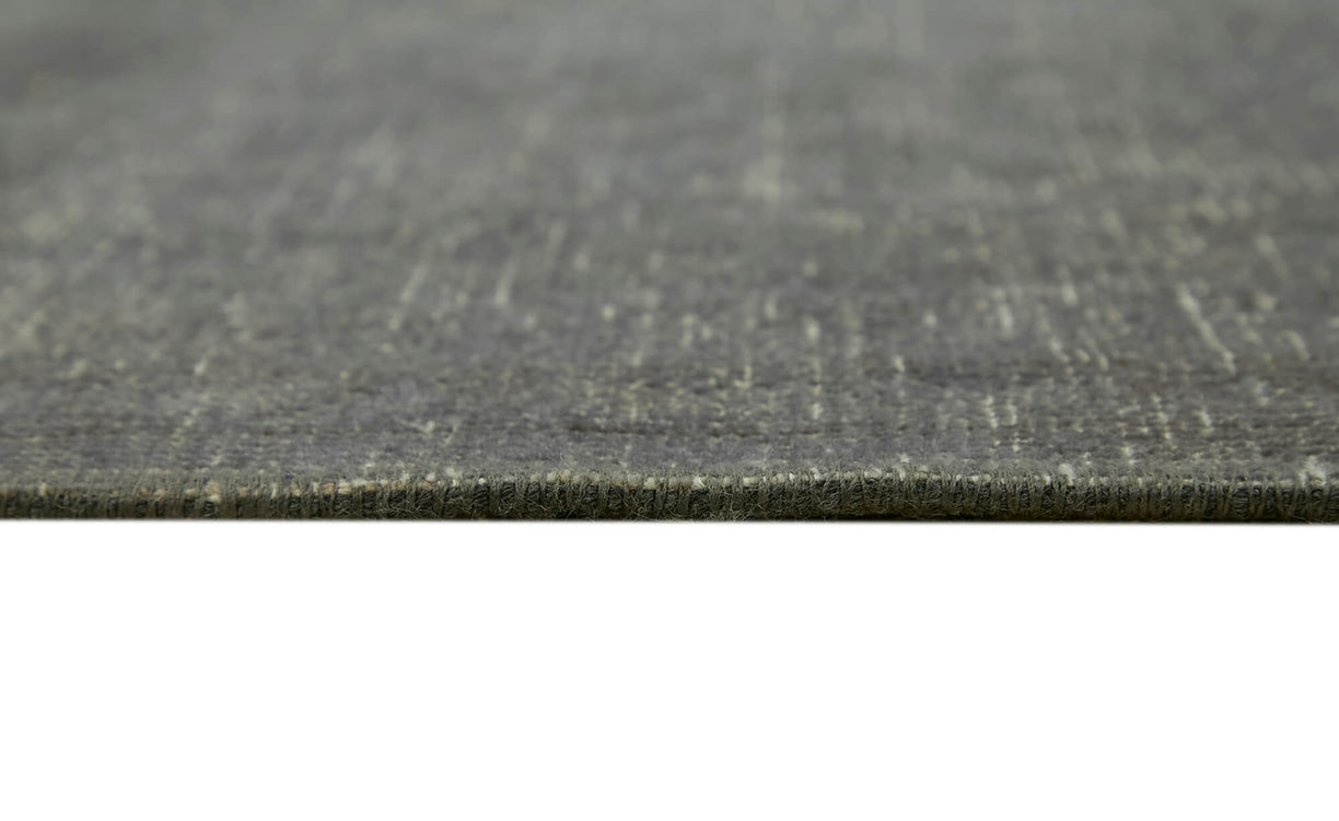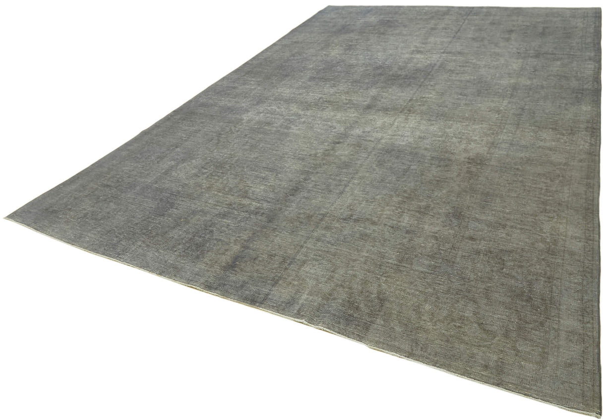 This grey over-dyed rug offers a contemporary look with abstract appeal, crafted from a hand-knotted vintage Oriental rug from the 1960s. it measures 9' 4'' x 13' 9''. The rug undergoes a unique process to lower the pile, desaturate the color, and achieve the perfect hue. This transformation bridges generations of artisanal skill, making it a unique statement piece for modern décor. All our vintage rugs are professionally cleaned before being added to our collection.