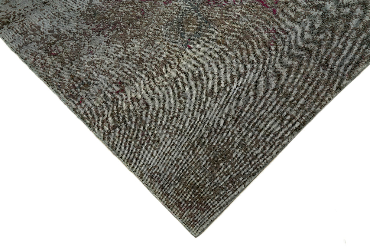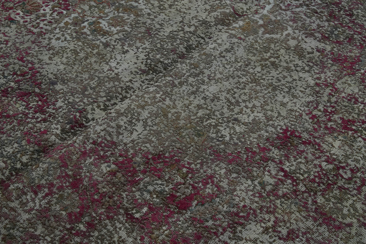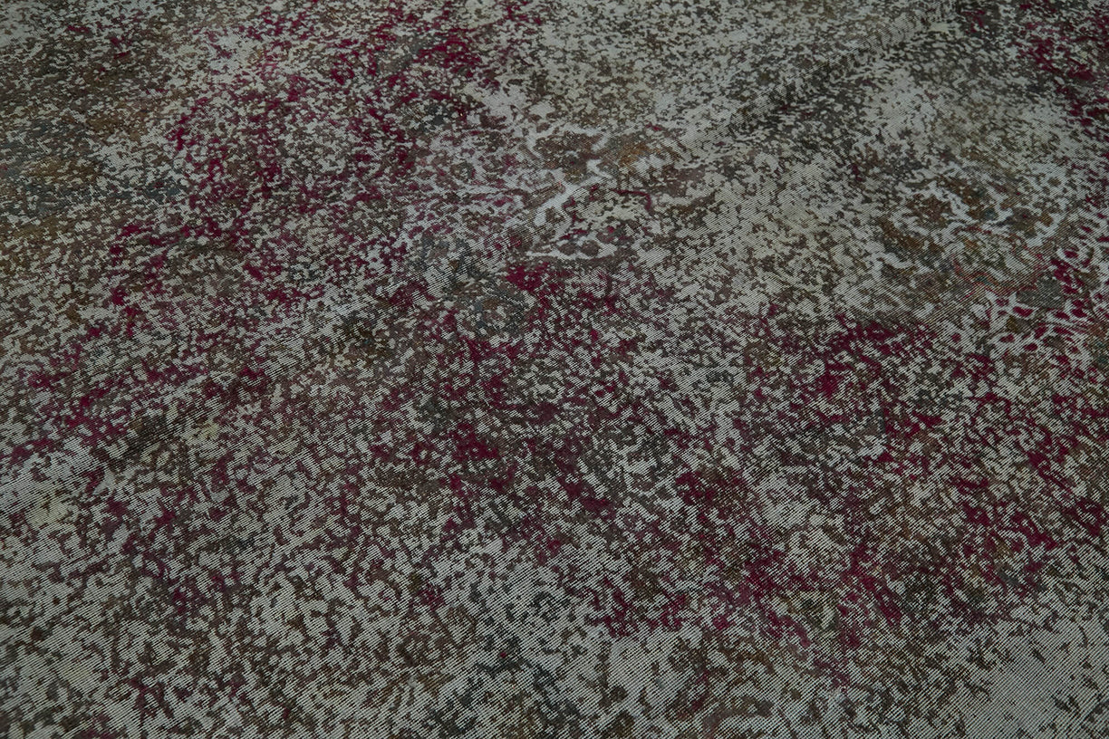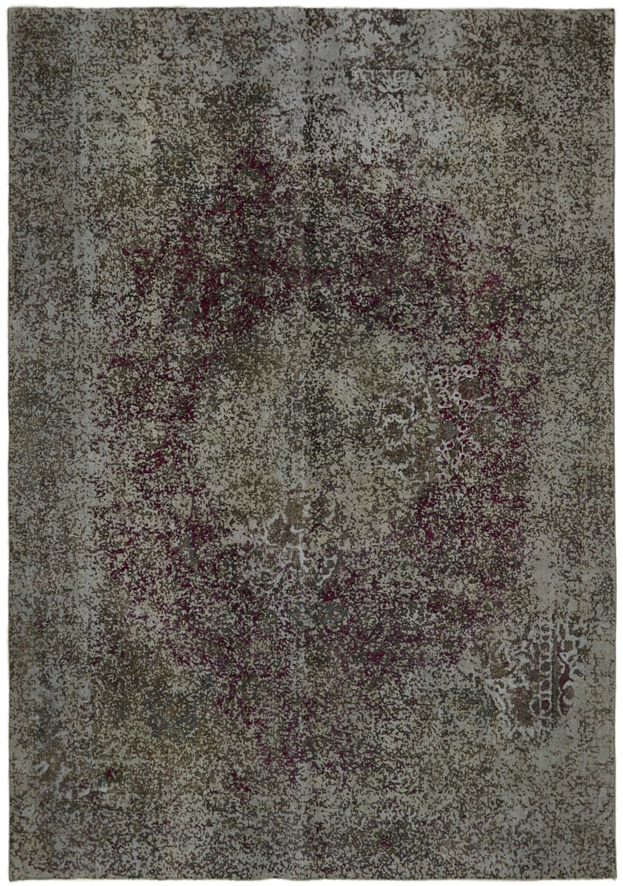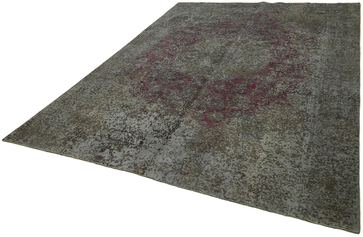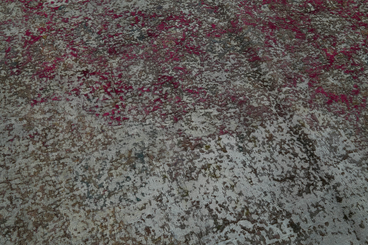 This grey over-dyed rug offers a contemporary look with abstract appeal, crafted from a hand-knotted vintage Oriental rug from the 1960s. it measures 7' 9'' x 10' 10''. The rug undergoes a unique process to lower the pile, desaturate the color, and achieve the perfect hue. This transformation bridges generations of artisanal skill, making it a unique statement piece for modern décor. All our vintage rugs are professionally cleaned before being added to our collection.