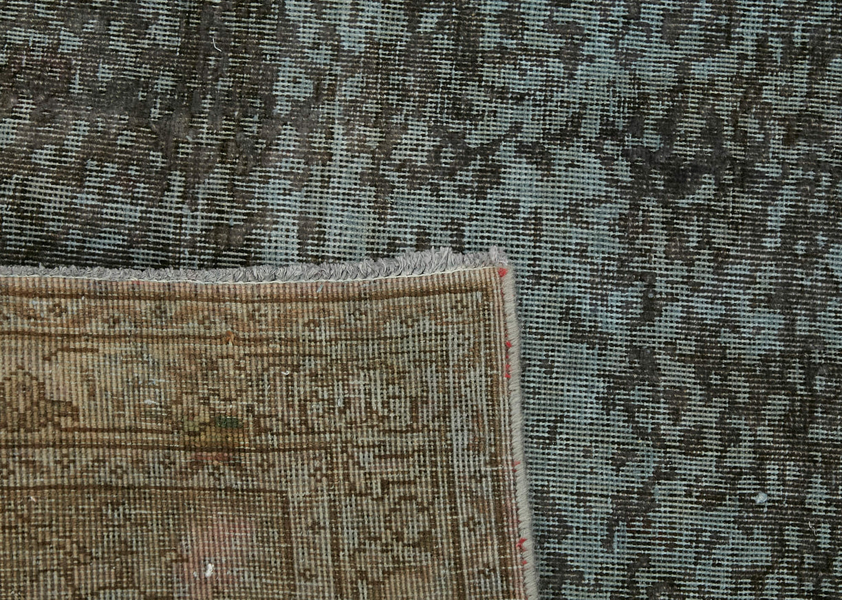 This grey over-dyed rug offers a contemporary look with abstract appeal, crafted from a hand-knotted vintage Oriental rug from the 1960s. it measures 7' 11'' x 11' 2''. The rug undergoes a unique process to lower the pile, desaturate the color, and achieve the perfect hue. This transformation bridges generations of artisanal skill, making it a unique statement piece for modern décor. All our vintage rugs are professionally cleaned before being added to our collection.