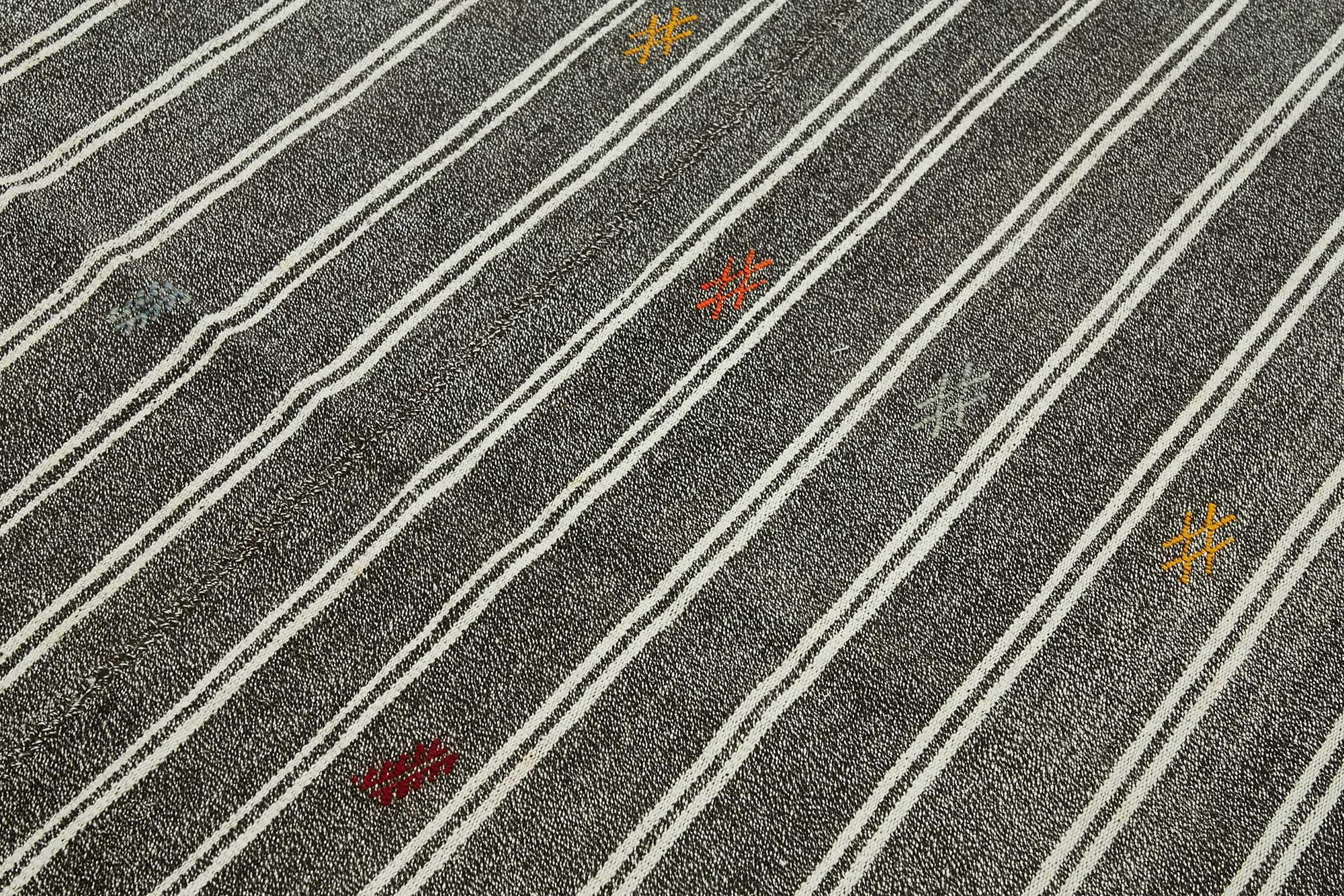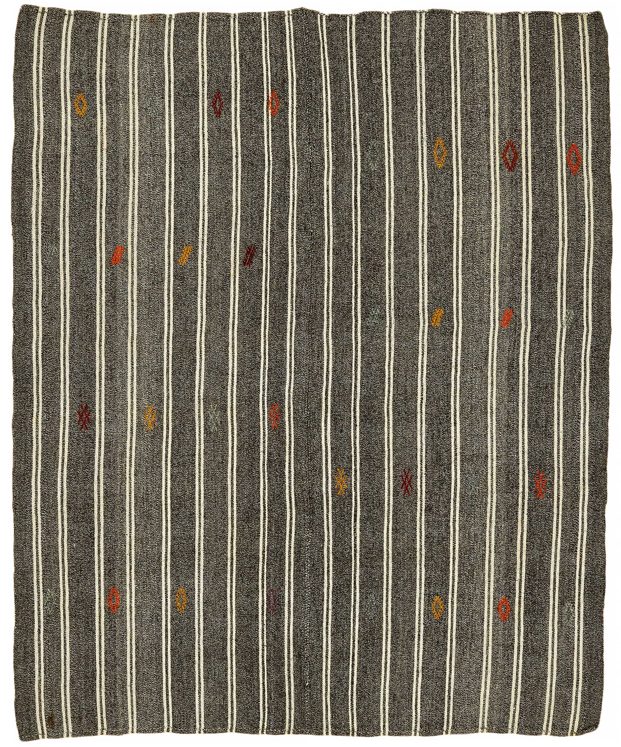 This handwoven kilim is crafted from a unique blend of goat hair and wool, a time-honored material combination used by Anatolian tribes for centuries. Known for its stiff, coarse texture, goat hair was traditionally used to make tents, saddle bags, and floor coverings due to its incredible durability and weather resistance.These vintage kilims, usually 40–60 years old, are perfect for high-traffic areas such as hallways, entryways, and office floors. The strong fiber structure allows the rug to lie flat and maintain its form over time.