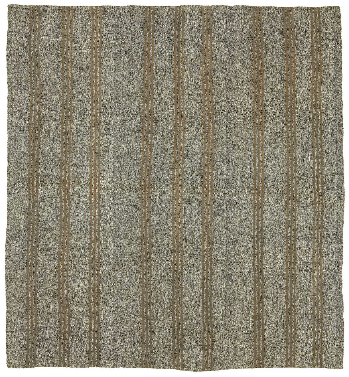This handwoven kilim is crafted from a unique blend of goat hair and wool, a time-honored material combination used by Anatolian tribes for centuries. Known for its stiff, coarse texture, goat hair was traditionally used to make tents, saddle bags, and floor coverings due to its incredible durability and weather resistance.These vintage kilims, usually 40–60 years old, are perfect for high-traffic areas such as hallways, entryways, and office floors. The strong fiber structure allows the rug to lie flat and maintain its form over time.