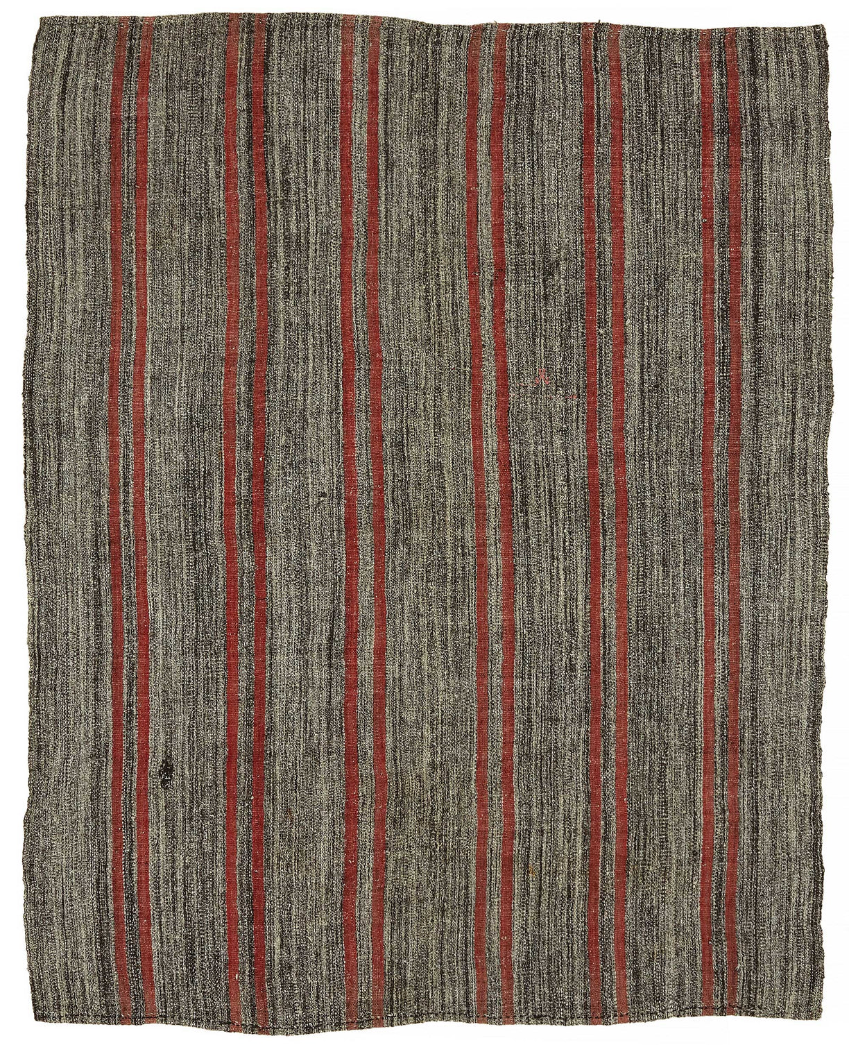 This handwoven kilim is crafted from a unique blend of goat hair and wool, a time-honored material combination used by Anatolian tribes for centuries. Known for its stiff, coarse texture, goat hair was traditionally used to make tents, saddle bags, and floor coverings due to its incredible durability and weather resistance.These vintage kilims, usually 40–60 years old, are perfect for high-traffic areas such as hallways, entryways, and office floors. The strong fiber structure allows the rug to lie flat and maintain its form over time.