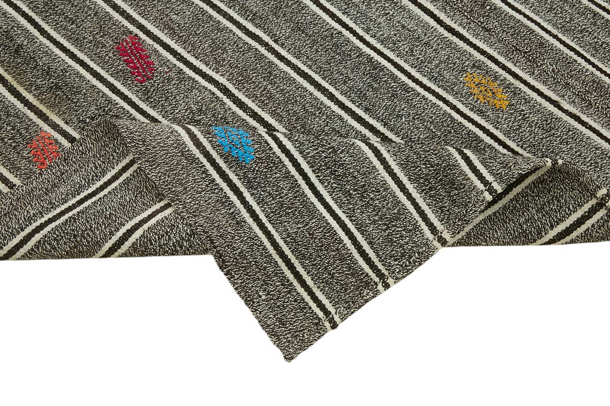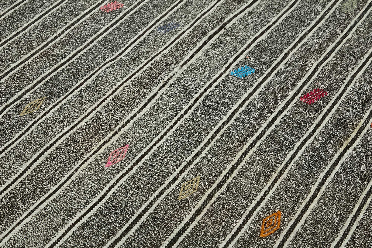 This handwoven kilim is crafted from a unique blend of goat hair and wool, a time-honored material combination used by Anatolian tribes for centuries. Known for its stiff, coarse texture, goat hair was traditionally used to make tents, saddle bags, and floor coverings due to its incredible durability and weather resistance.These vintage kilims, usually 40–60 years old, are perfect for high-traffic areas such as hallways, entryways, and office floors. The strong fiber structure allows the rug to lie flat and maintain its form over time.