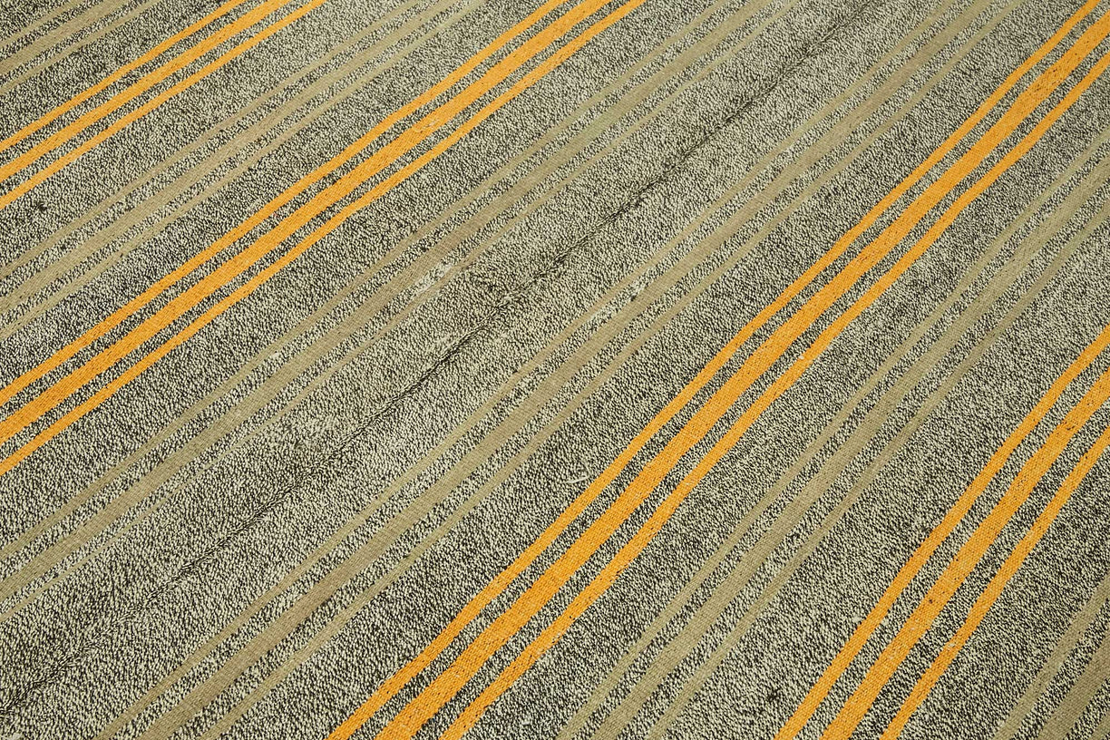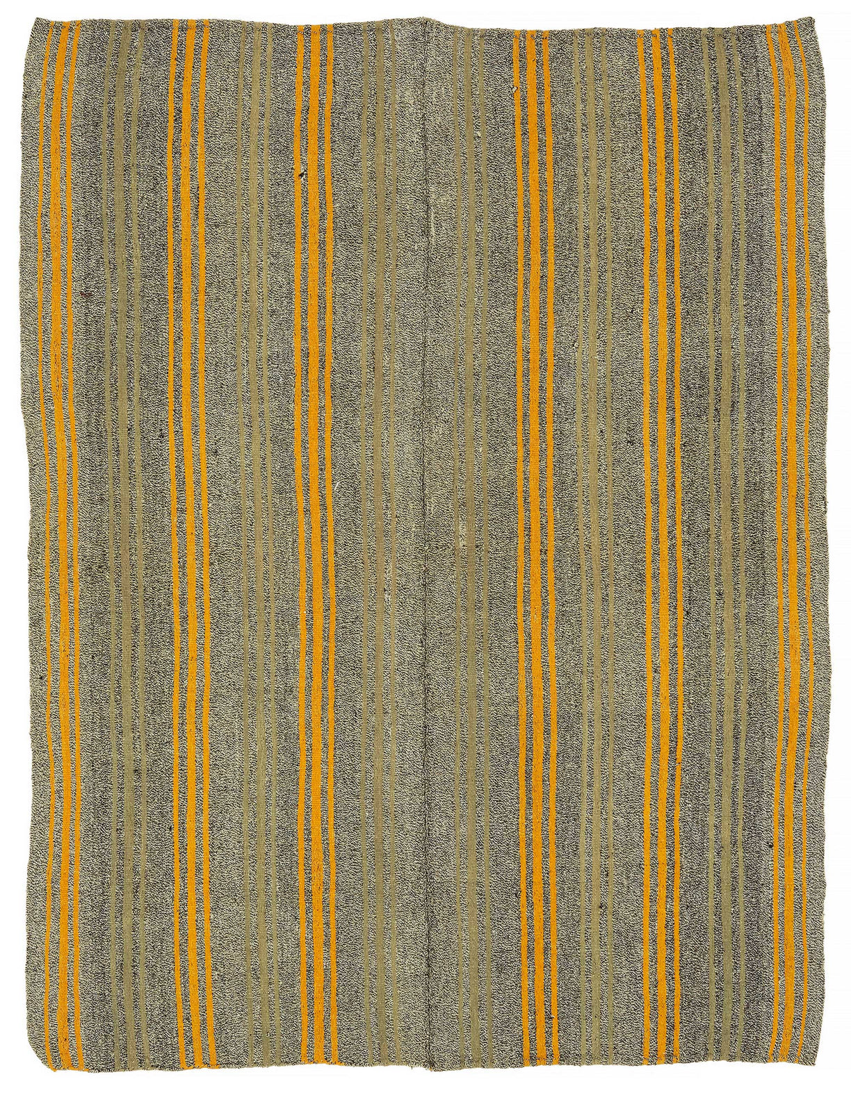 This handwoven kilim is crafted from a unique blend of goat hair and wool, a time-honored material combination used by Anatolian tribes for centuries. Known for its stiff, coarse texture, goat hair was traditionally used to make tents, saddle bags, and floor coverings due to its incredible durability and weather resistance.These vintage kilims, usually 40–60 years old, are perfect for high-traffic areas such as hallways, entryways, and office floors. The strong fiber structure allows the rug to lie flat and maintain its form over time.
