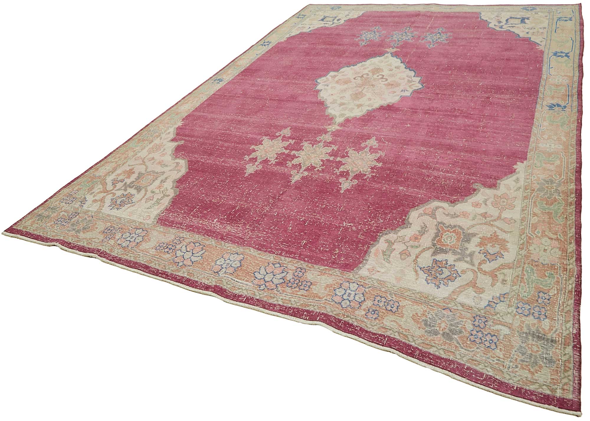 These oversized vintage rugs are made from 30 to 70-year-old hand-knotted Oriental carpets, sourced from the historic weaving regions of Anatolia. Each piece is carefully selected, then professionally cleaned and restored, preserving the original patterns and unique textures that tell stories of generations past.The natural aging process gives these rugs a soft, muted character, revealing the charm of traditional craftsmanship through time-worn detail. Their large size makes them ideal for open living rooms, expansive dining areas, or large floors, where scale and texture come together to define the atmosphere of a space.Reinforced with a buckram and cotton backing, these rugs are not only beautiful but durable and reliable—crafted to withstand everyday life while retaining their visual impact. Whether used as a centerpiece in a grand room or to create a cozy division in open layouts, these rugs bring warmth, character, and authenticity into any setting.