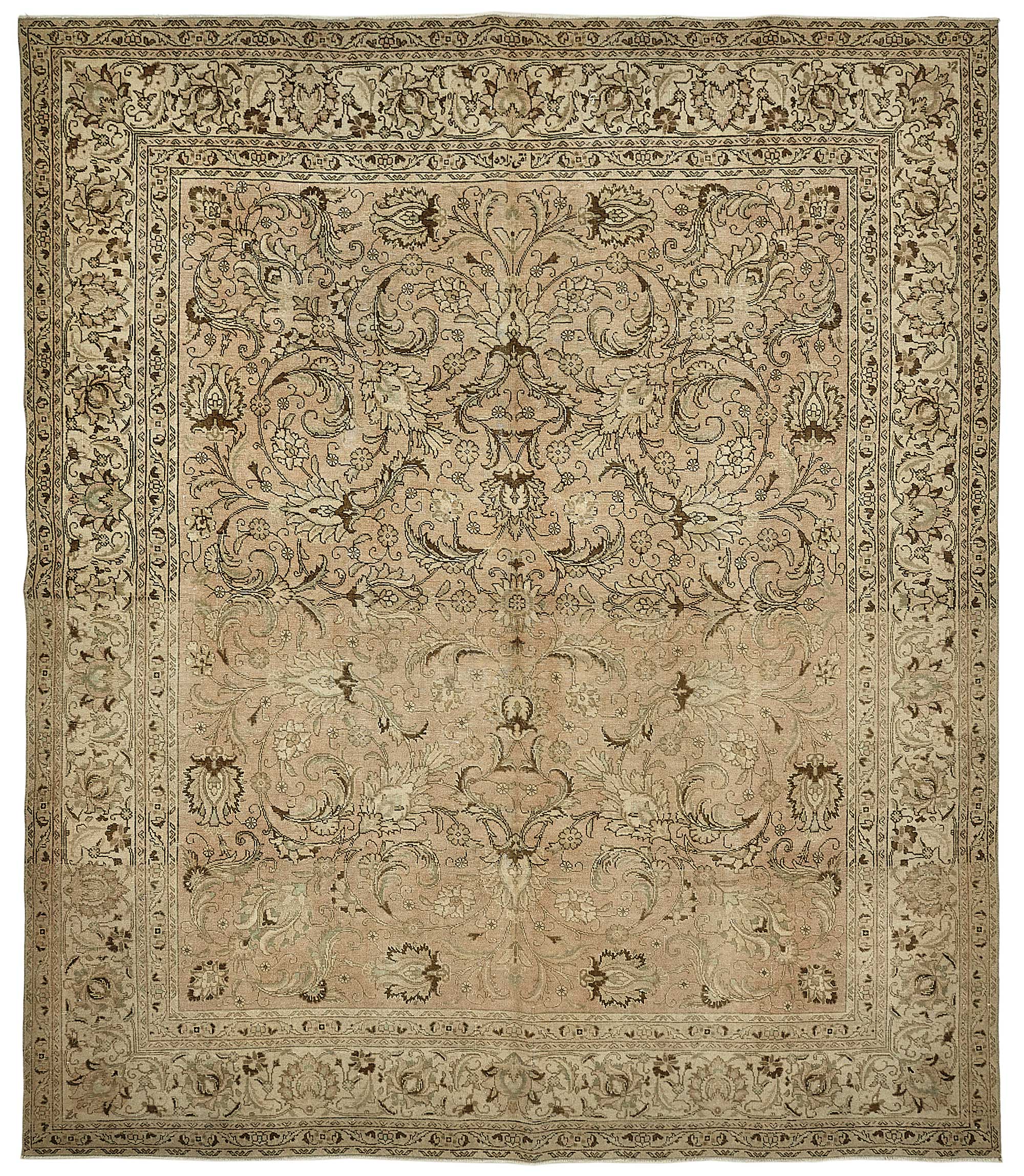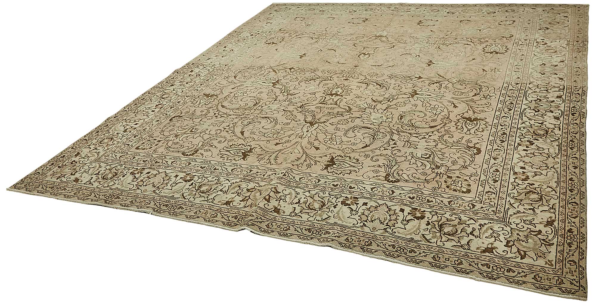 These oversized vintage rugs are made from 30 to 70-year-old hand-knotted Oriental carpets, sourced from the historic weaving regions of Anatolia. Each piece is carefully selected, then professionally cleaned and restored, preserving the original patterns and unique textures that tell stories of generations past.The natural aging process gives these rugs a soft, muted character, revealing the charm of traditional craftsmanship through time-worn detail. Their large size makes them ideal for open living rooms, expansive dining areas, or large floors, where scale and texture come together to define the atmosphere of a space.Reinforced with a buckram and cotton backing, these rugs are not only beautiful but durable and reliable—crafted to withstand everyday life while retaining their visual impact. Whether used as a centerpiece in a grand room or to create a cozy division in open layouts, these rugs bring warmth, character, and authenticity into any setting.