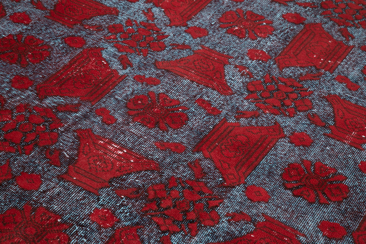 Explore our Hand-carved Over-dyed rugs, where vintage hand-knotted Turkish rugs from the 60s and 70s are given new life. The original colors are removed and replaced with vibrant, contemporary tones. What makes these rugs truly special is the detailed carving of the original pattern, creating a striking 3D texture. These rugs blend traditional craftsmanship with a modern artistic flair, making them an ideal choice for contemporary interiors. Crafted from 100% wool on a durable cotton foundation, they stand out as both functional decor and timeless works of art.