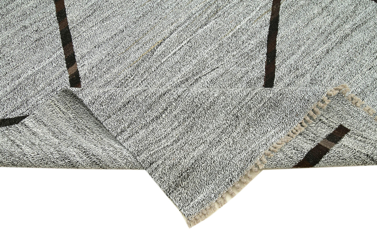 Step into a world of luxury with our handwoven modern Turkish kilim, where modern design meets traditional craftsmanship. Made with the finest unraveled wool, this kilim features a sleek, contemporary pattern that elevates any space with its understated elegance. The handwoven texture brings a unique tactile quality, while the durable wool construction ensures it remains a centerpiece in your home for years. Ideal for those who appreciate the fusion of modern aesthetics and time-honored techniques, this kilim is a true work of art.