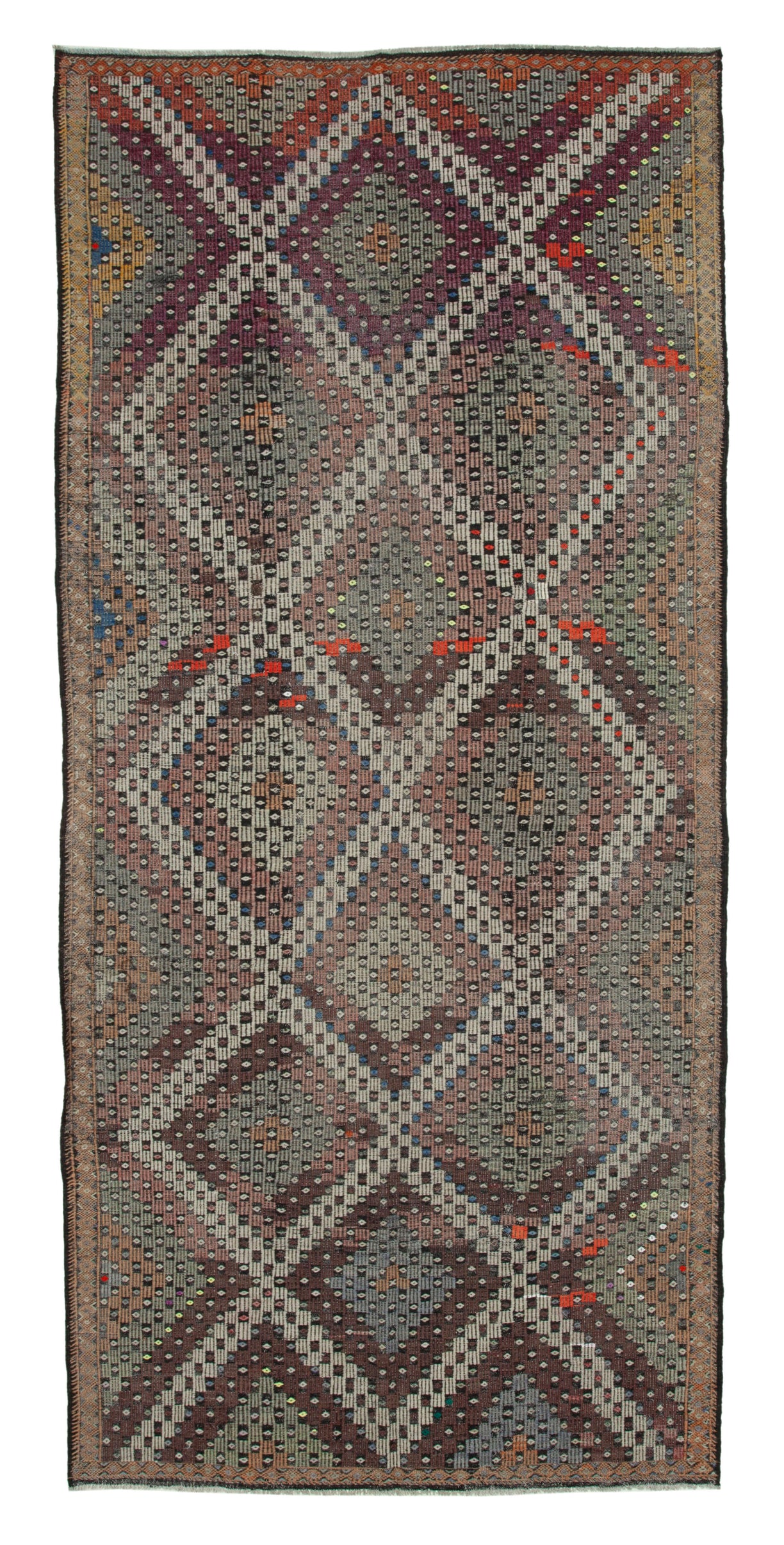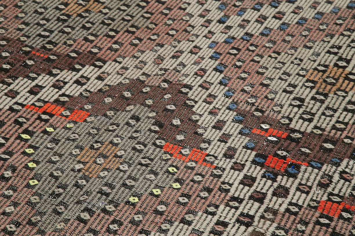 Discover the timeless beauty of our Jijim Kilims, handwoven by artisans in Anatolia, Turkey, 30-40 years ago. These vintage pieces are crafted using a traditional flat-weave technique, enriched with intricate embroidered patterns that add depth and texture. Each kilim reflects the rich cultural heritage of Anatolia, featuring vibrant geometric designs and high-quality wool. These unique rugs are more than just floor coverings—they're pieces of history that bring warmth and character to any interior.