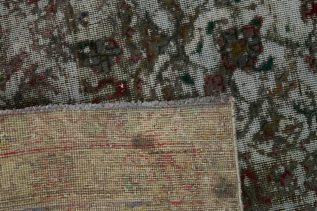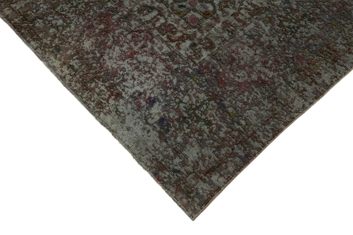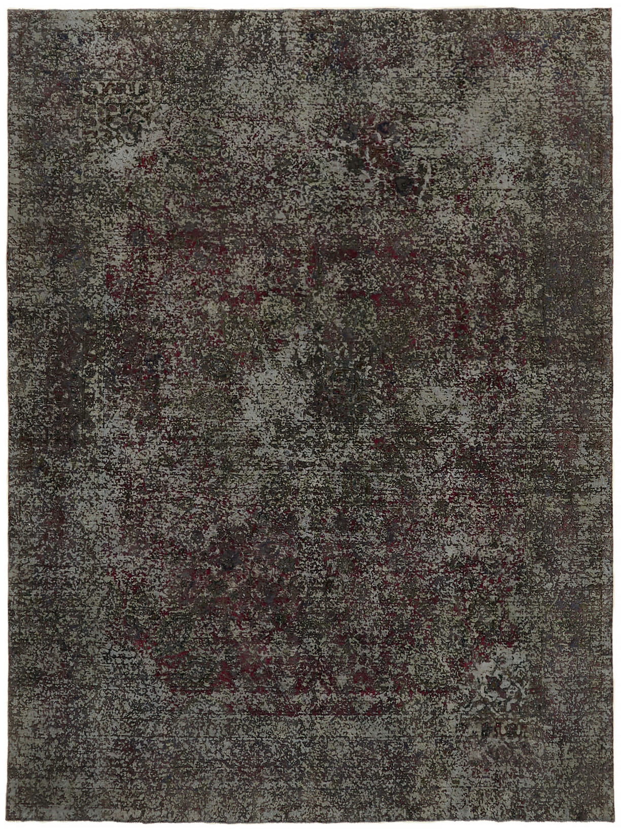 This grey over-dyed rug offers a contemporary look with abstract appeal, crafted from a hand-knotted vintage Oriental rug from the 1960s. it measures 9' 7'' x 12' 6''. The rug undergoes a unique process to lower the pile, desaturate the color, and achieve the perfect hue. This transformation bridges generations of artisanal skill, making it a unique statement piece for modern décor. All our vintage rugs are professionally cleaned before being added to our collection.