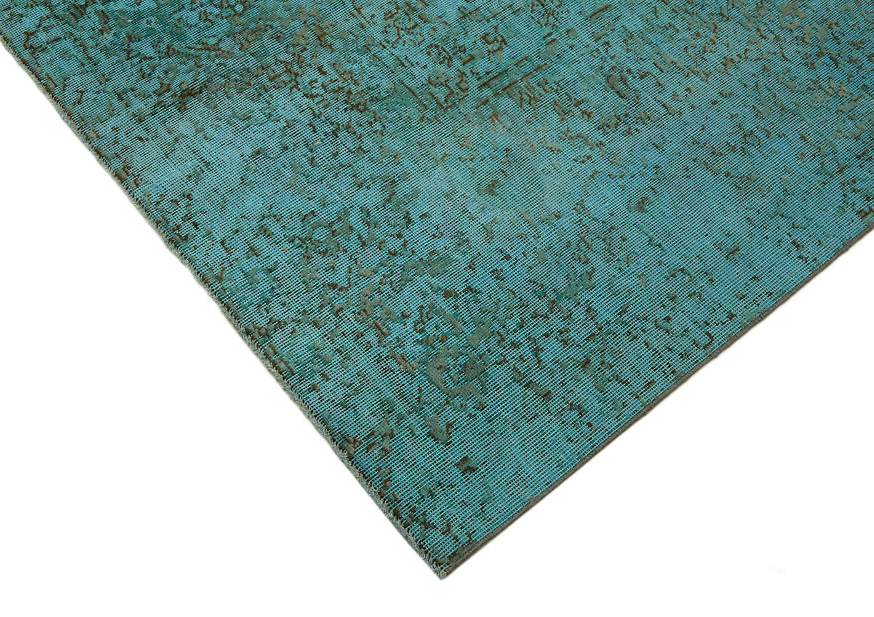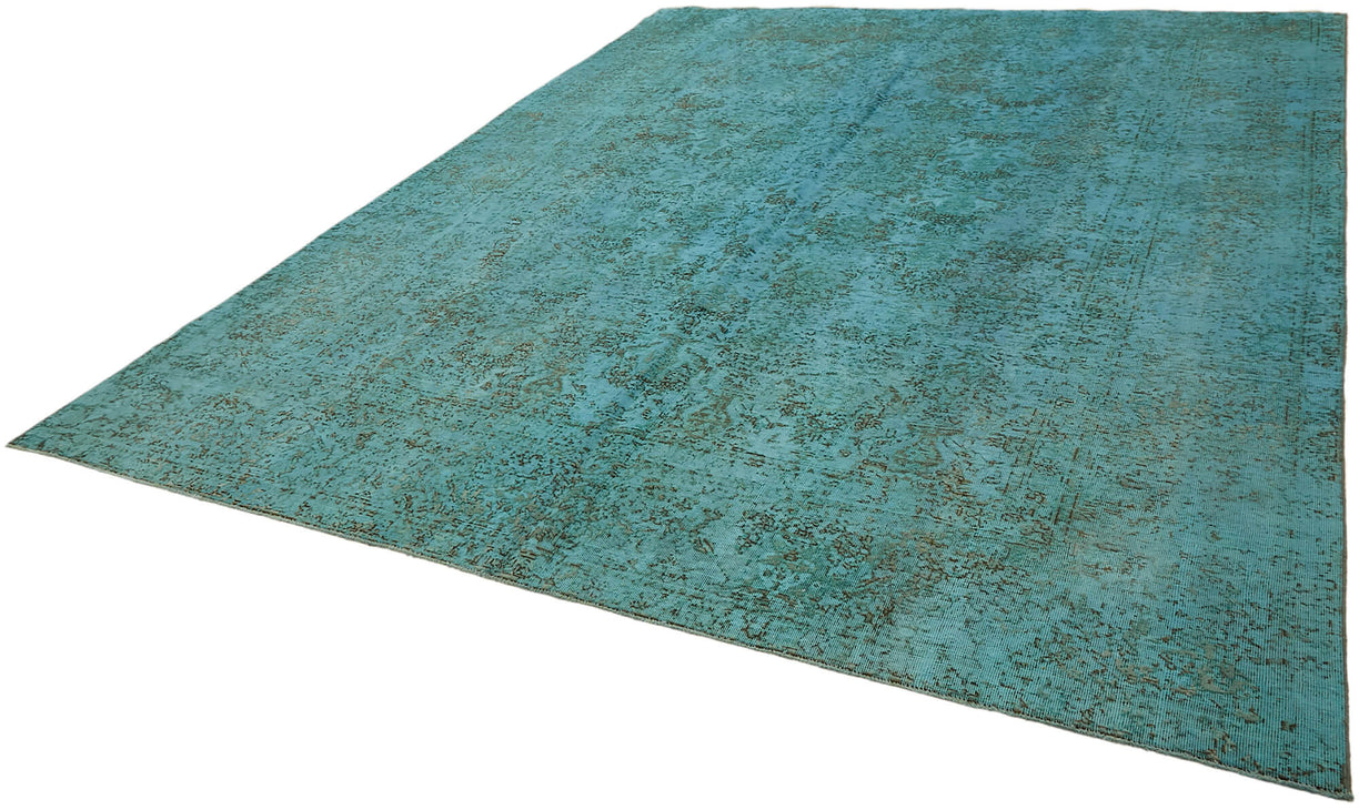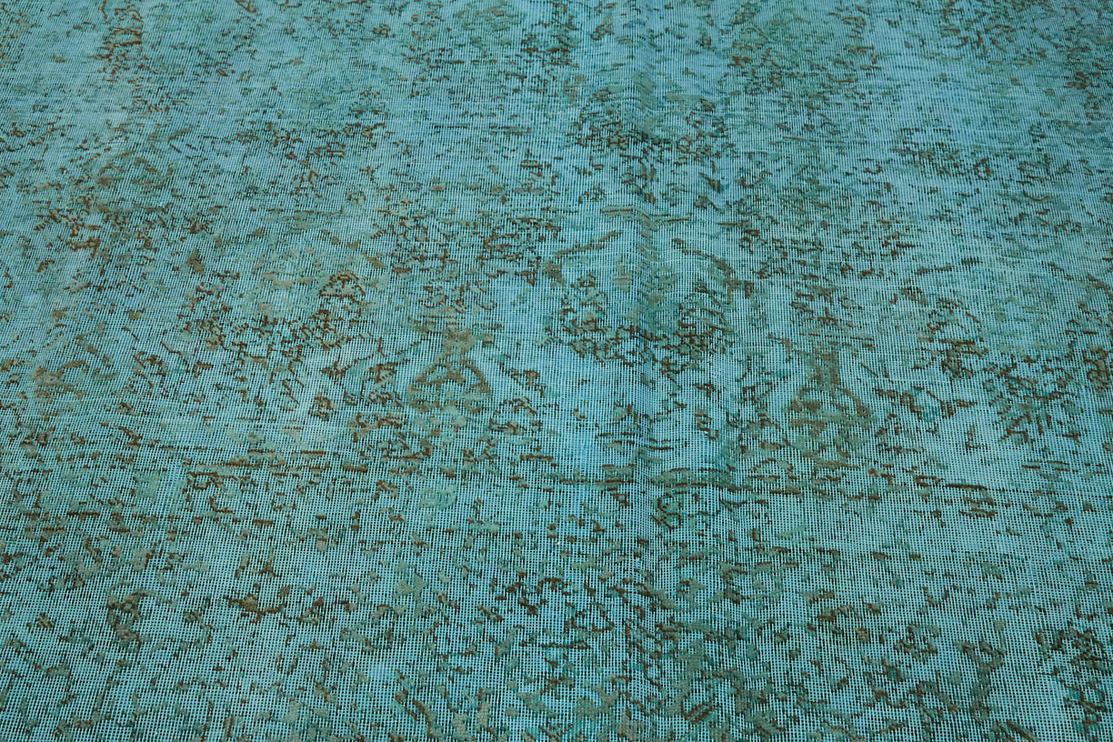 This blue over-dyed rug offers a contemporary look with abstract appeal, crafted from a hand-knotted vintage Oriental rug from the 1960s. it measures 9' 4'' x 12' 2''. The rug undergoes a unique process to lower the pile, desaturate the color, and achieve the perfect hue. This transformation bridges generations of artisanal skill, making it a unique statement piece for modern décor. All our vintage rugs are professionally cleaned before being added to our collection.