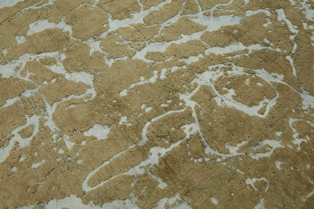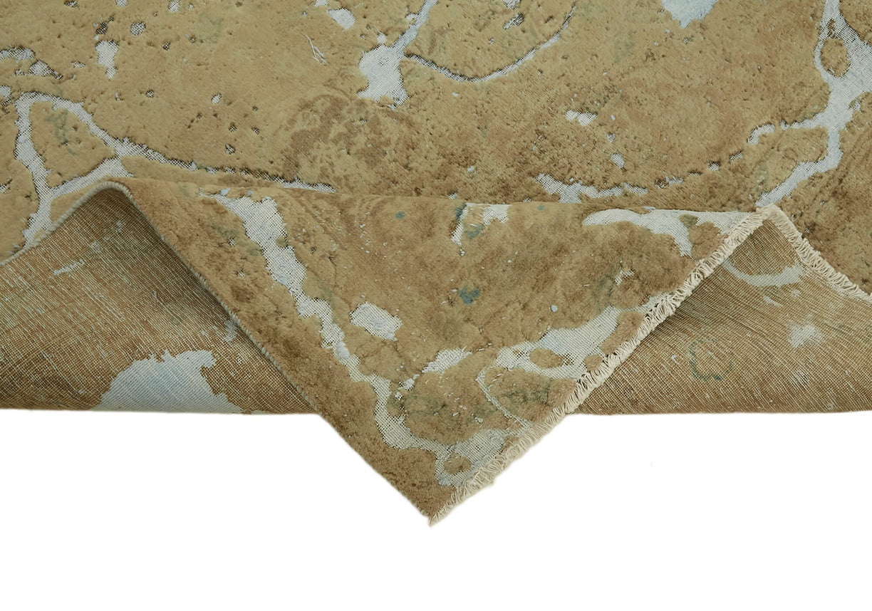 This beige over-dyed rug offers a contemporary look with abstract appeal, crafted from a hand-knotted vintage Oriental rug from the 1960s. it measures 9' 5'' x 12' 5''. The rug undergoes a unique process to lower the pile, desaturate the color, and achieve the perfect hue. This transformation bridges generations of artisanal skill, making it a unique statement piece for modern décor. All our vintage rugs are professionally cleaned before being added to our collection.