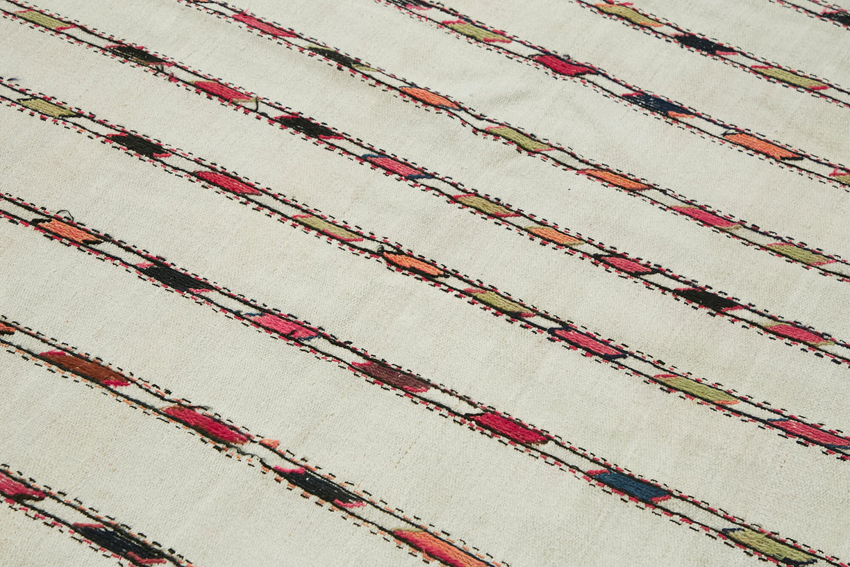 Turkish hemp kilim rugs are a unique type of flat-woven rug made from natural hemp fibers, which are durable and eco-friendly. Hemp has been used traditionally in Turkish weaving due to its strength and versatility. These kilims often feature earthy tones and minimalistic patterns, as hemp tends to absorb dyes differently than wool or cotton, resulting in a more subtle, organic look. Hemp kilims are popular for their rustic charm and sustainability, making them suitable for both traditional and modern interior styles. They're often used in living rooms, bedrooms, or outdoor spaces due to their resilience. Since hemp is a natural material, these rugs also tend to have a textured feel and a more breathable, airy quality compared to wool or cotton kilims.