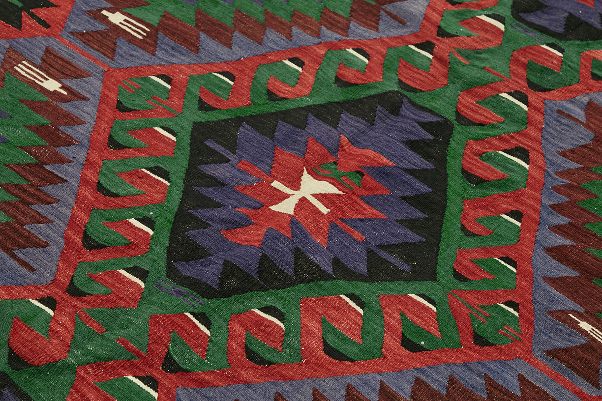Vintage hand-woven Anatolian kilim rug created 40-50 years ago by skilled women in Anatolian villages. Made from the finest quality wool, these vintage treasures showcase the rich cultural heritage and intricate artistry of the region. Each kilim tells a unique story with its vibrant patterns and timeless beauty, making it a perfect addition to any home. Experience the warmth, history and unparalleled craftsmanship of these authentic Anatolian masterpieces.